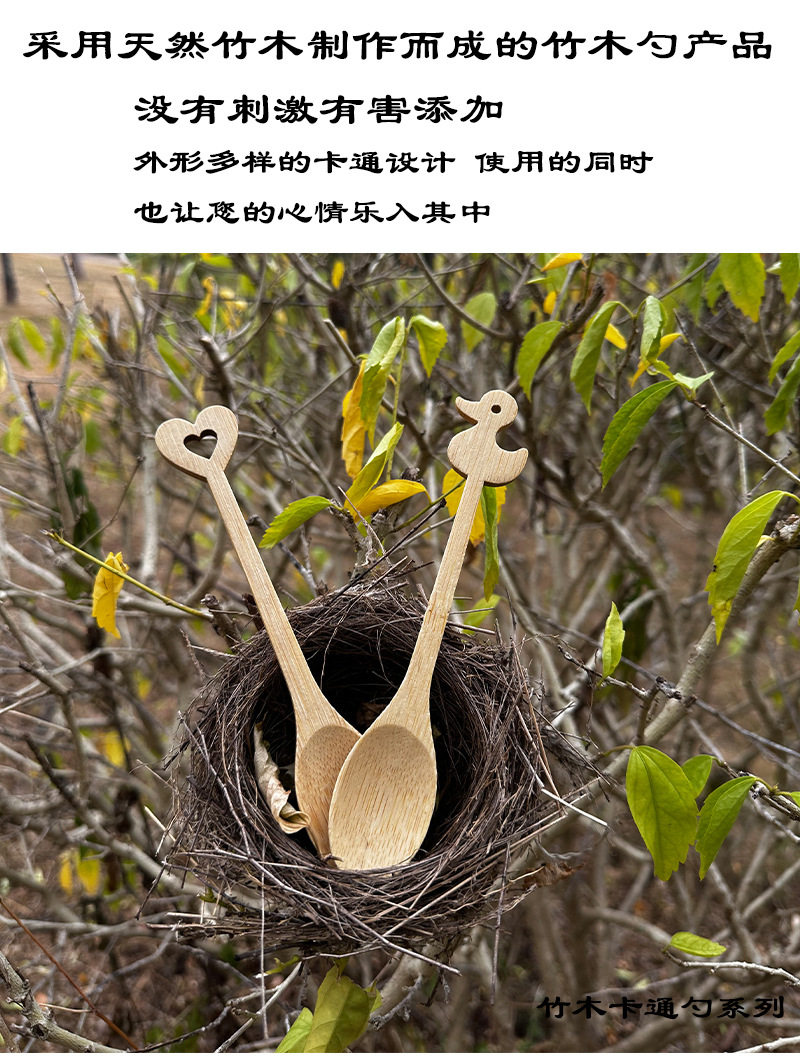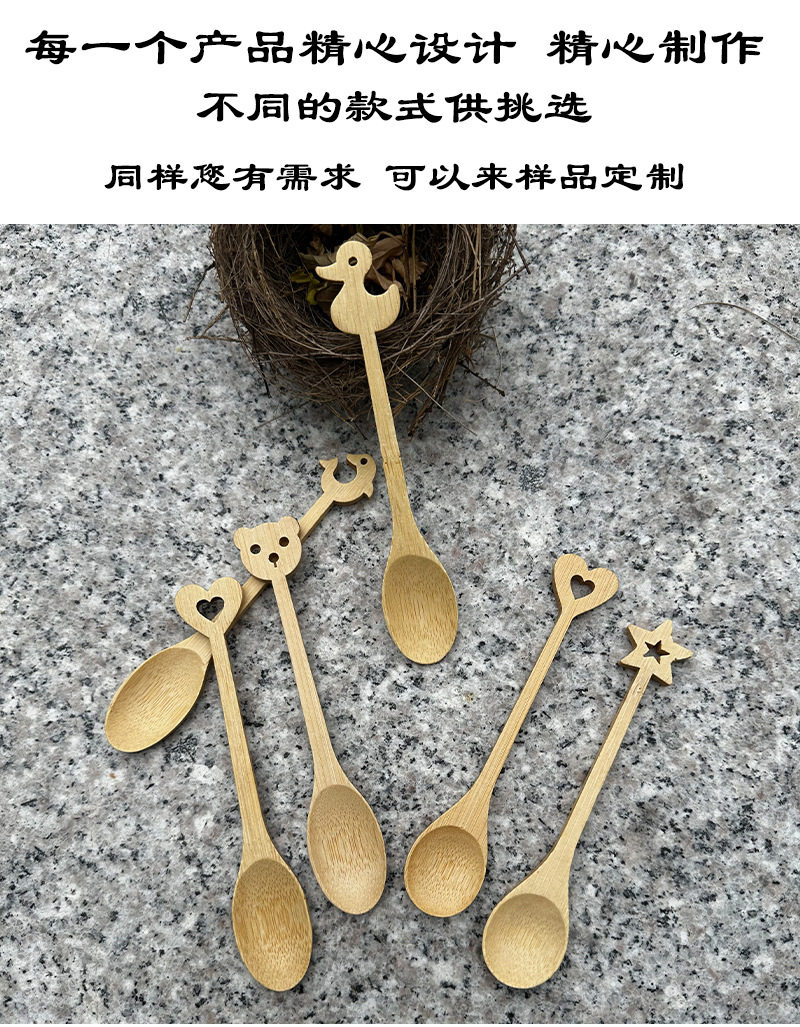 Cartoon Bamboo Spoon for Coffee, Ice Cream, Jam, Daily Use, High-Quality Dessert Spoon