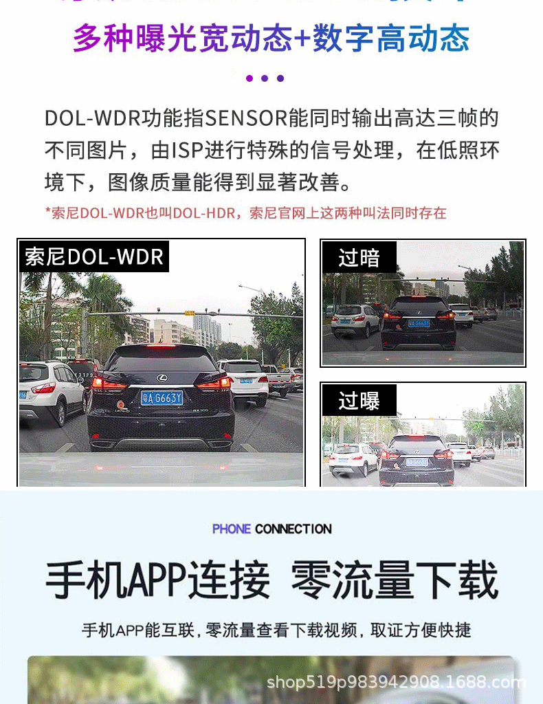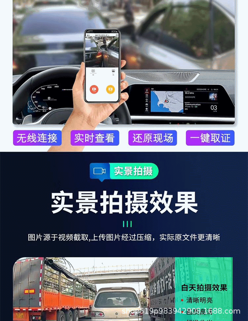 | Function | Parking monitoring,Collision sensing,Enhanced night vision,Before and after recording |
