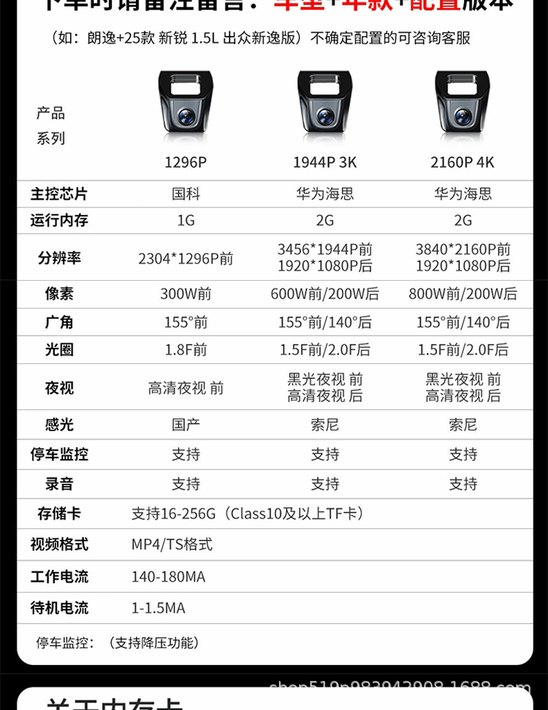 | Color classification | Single recording + 1080p hd +black light night vision,Single recording + 2k ultra-clear + voice control,Single recording + 4k ultra hd + sony lens,Dual recording before and after [4k+1k],4g remote monitoring pre-recorded hd + acc line |