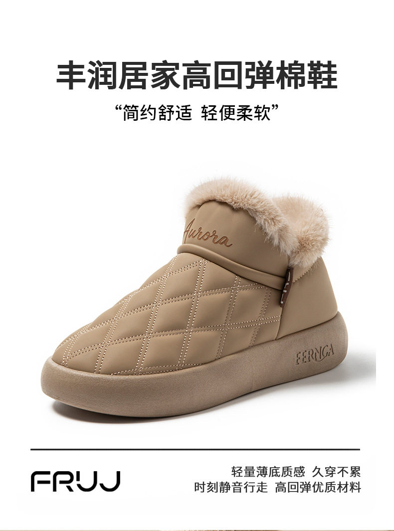 Fengrunjia Non-Slip Soft Sole Thick Sole Winter 2025 New Cotton Shoes Fleece-Lined Thickeneded Indoor Cotton Slippers Women's Shoes Export