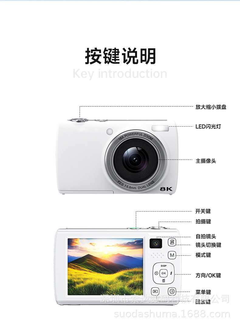 Cross-Border Exclusive 8K High-Definition Digital Camera Student Party Selfie Beauty Filter Camera Travel Photography Camera