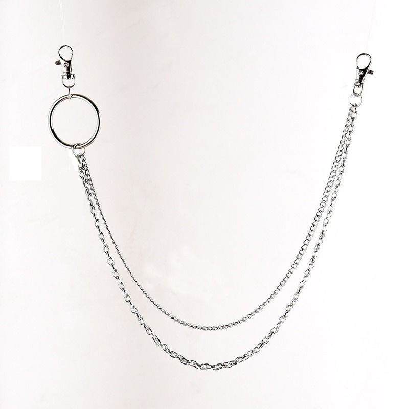 European and American Cross-Border Punk Style Double-Layer Metal Skull Pendant Pants Chain for Men and Women, Trendy and Cool Chain Waist Chain Hip-Hop Accessories