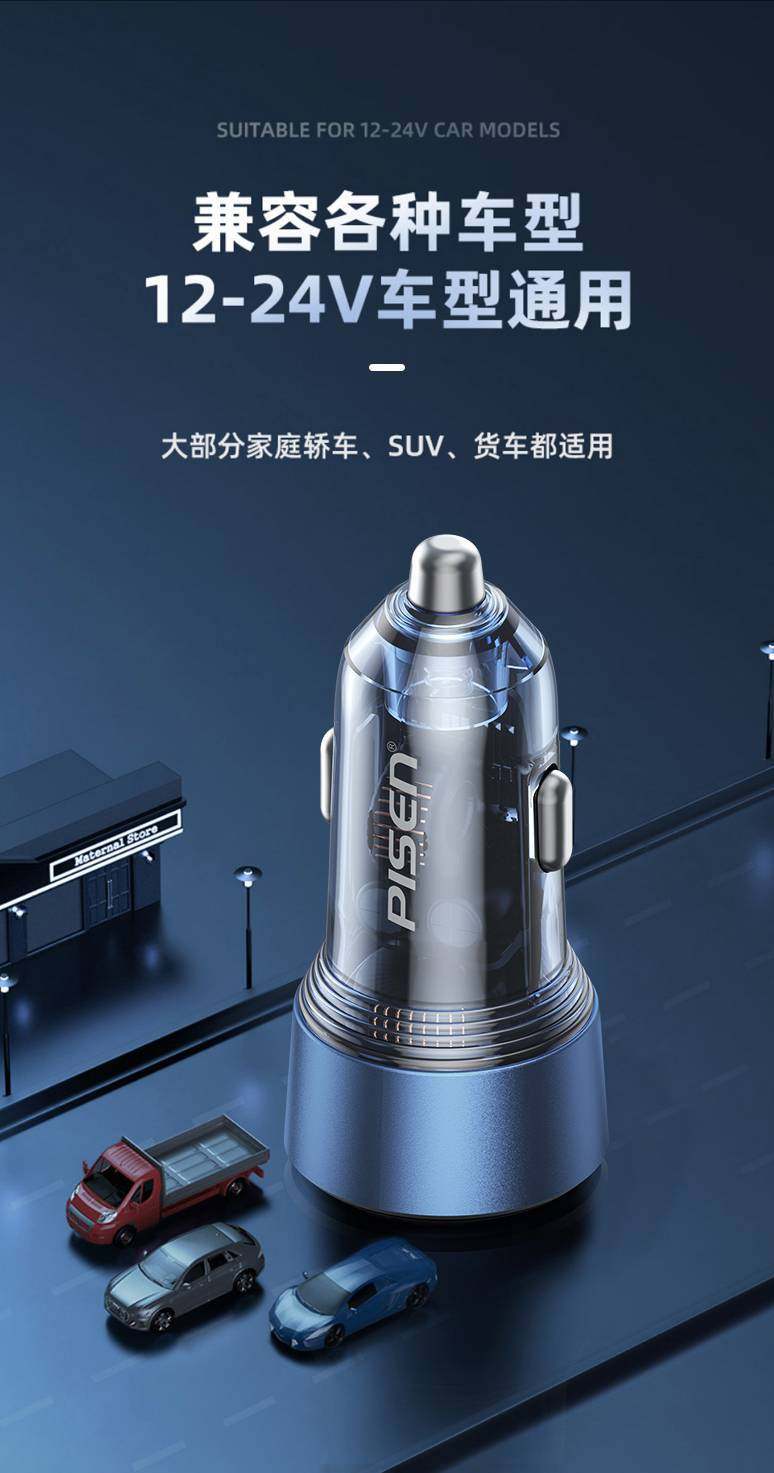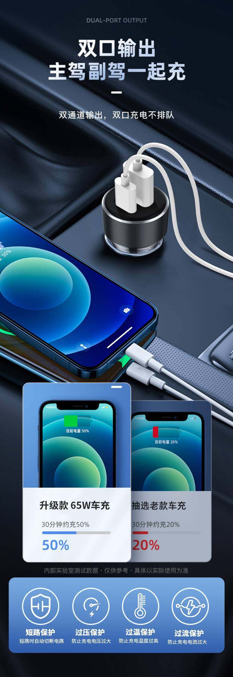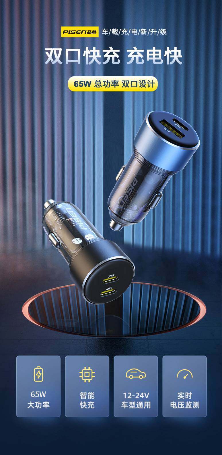 Pinsheng 65W Car Charger 30W Dual Port Pd Fast Charging One for Two Car Cigarette Lighter Conversion for Apple