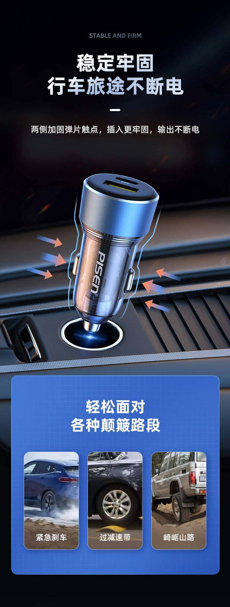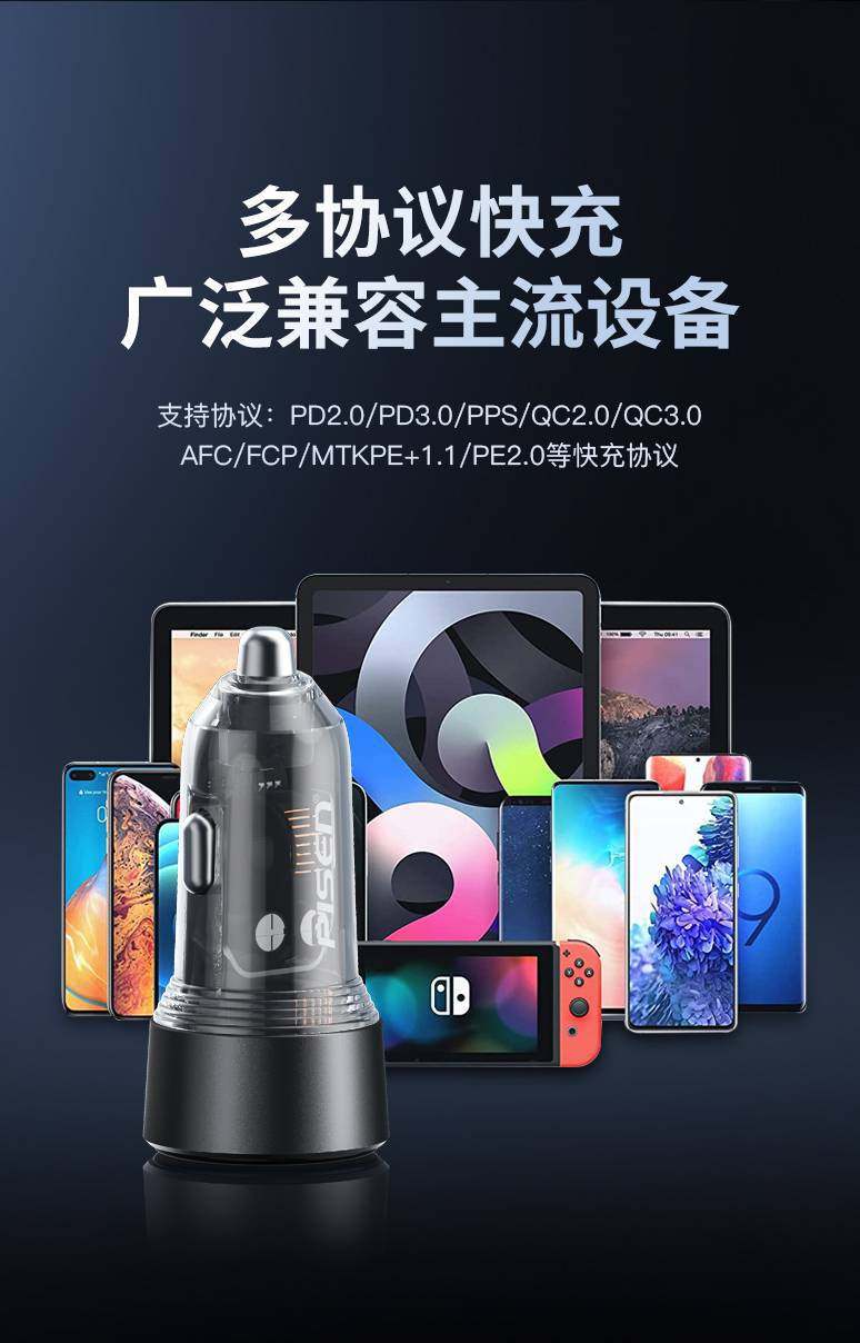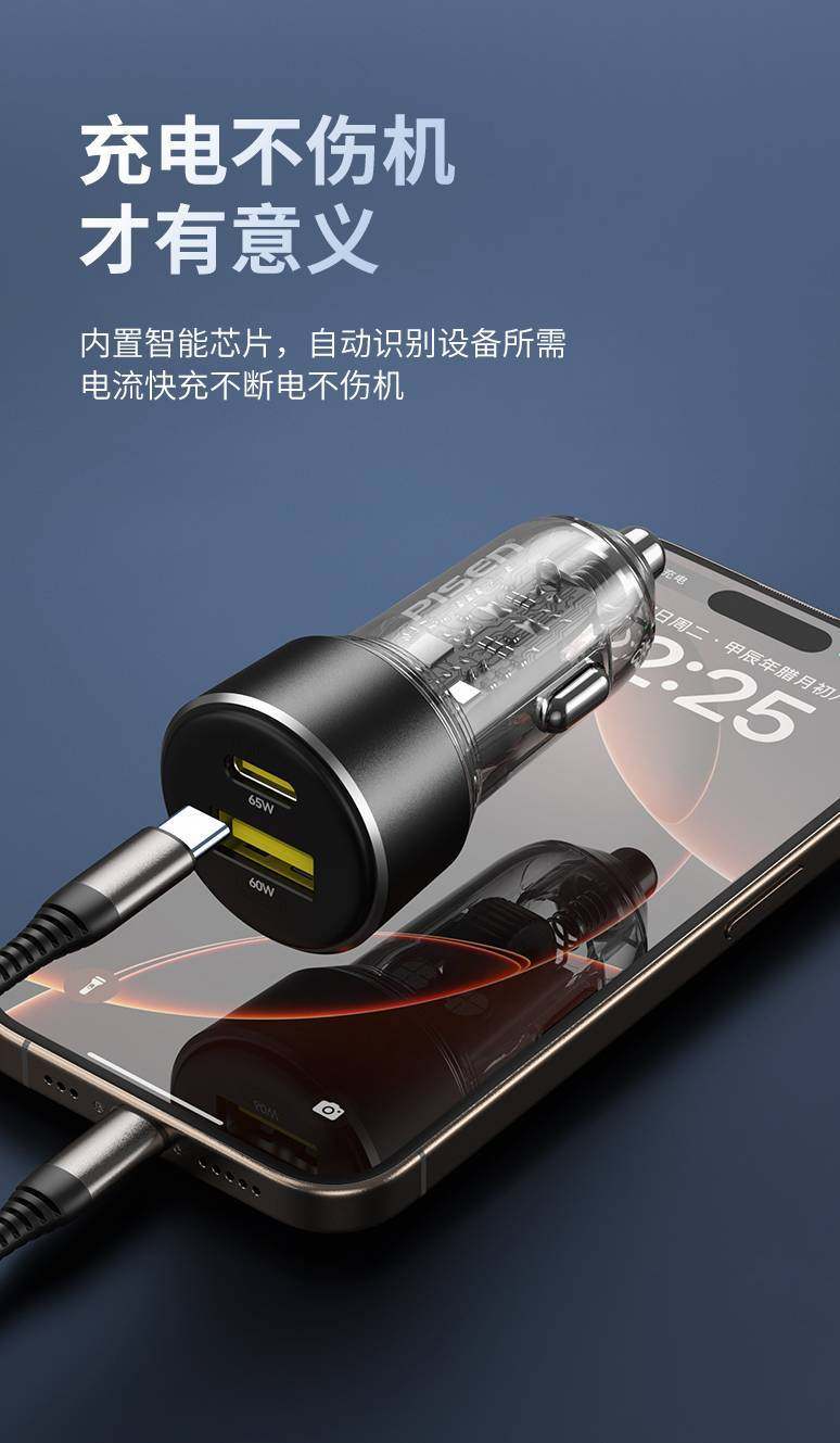 Pinsheng 65W Car Charger 30W Dual Port Pd Fast Charging One for Two Car Cigarette Lighter Conversion for Apple