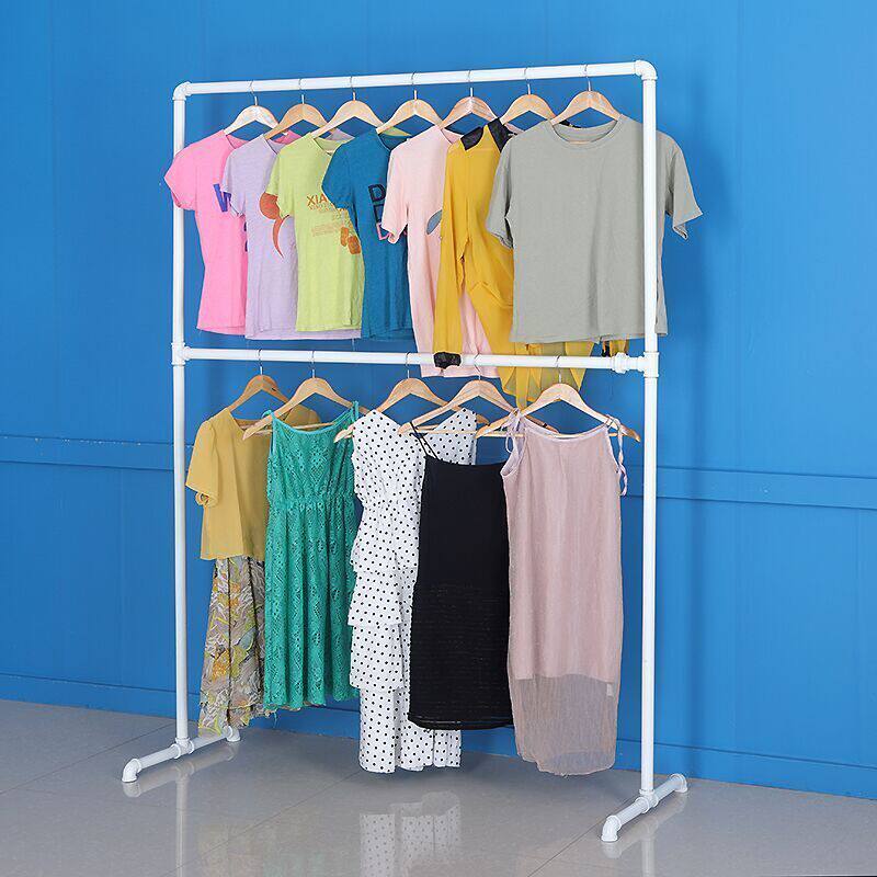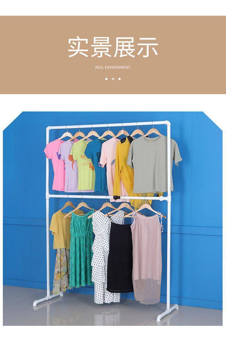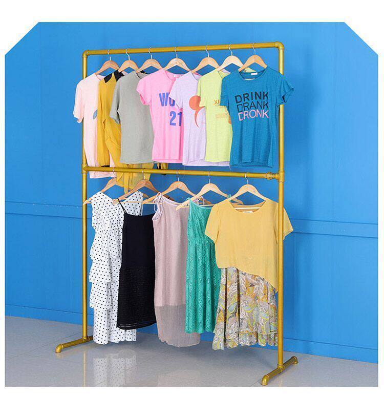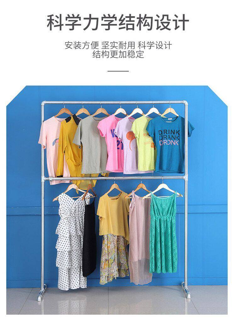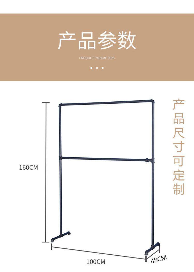 Thickened Water Pipe Clothes Hanger Clothing Display Rack Double-Layer Iron Floor Rack Retro Gantry Rack Clothing Store Display Rack