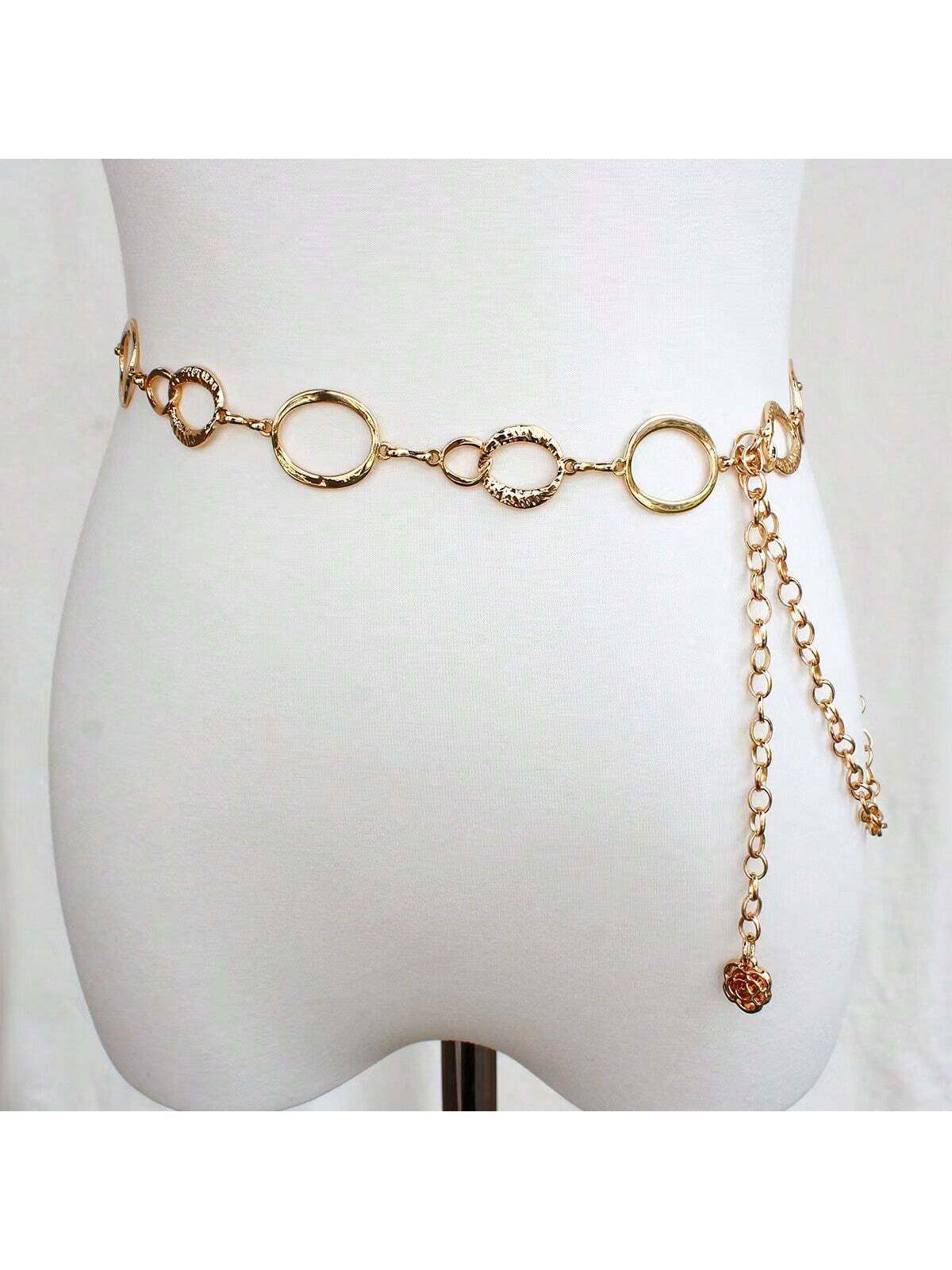 New Exquisite European and American Figure-Eight Circle Metal Ring Women's Waist Chain Simple and Fashionable Waist Accessories