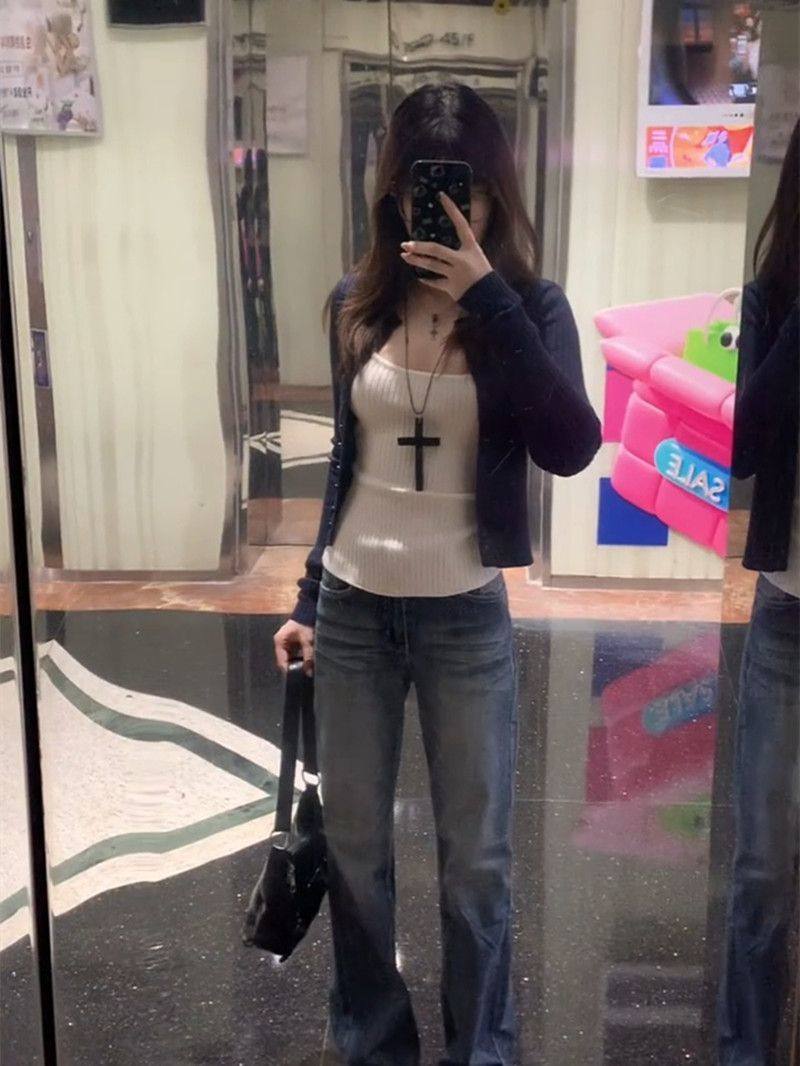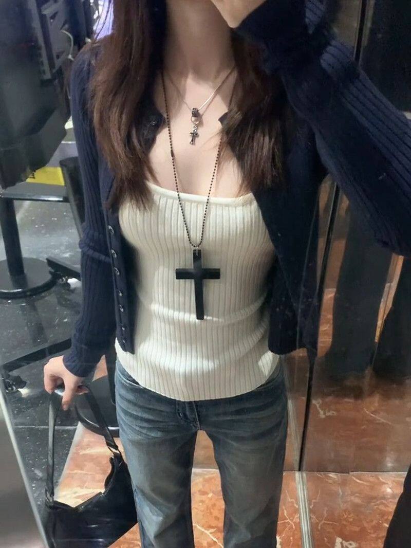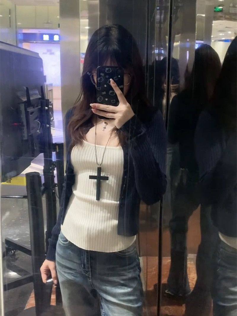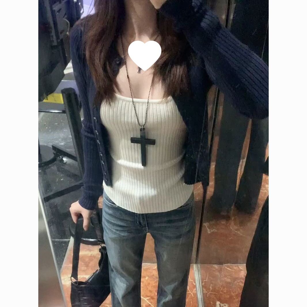 | Color | White camisole,Navy blue cardigan,White suspenders + navy blue cardigan |