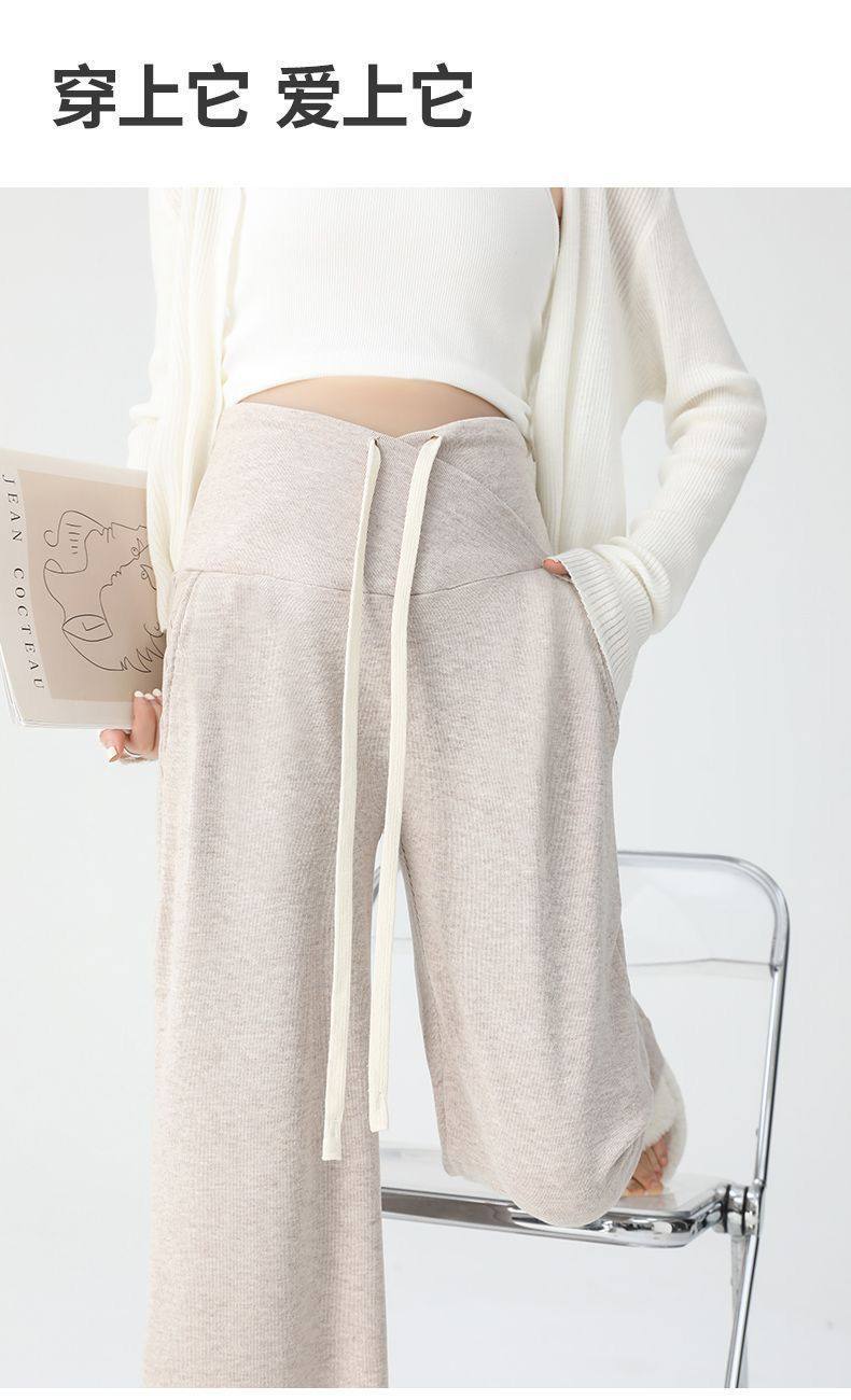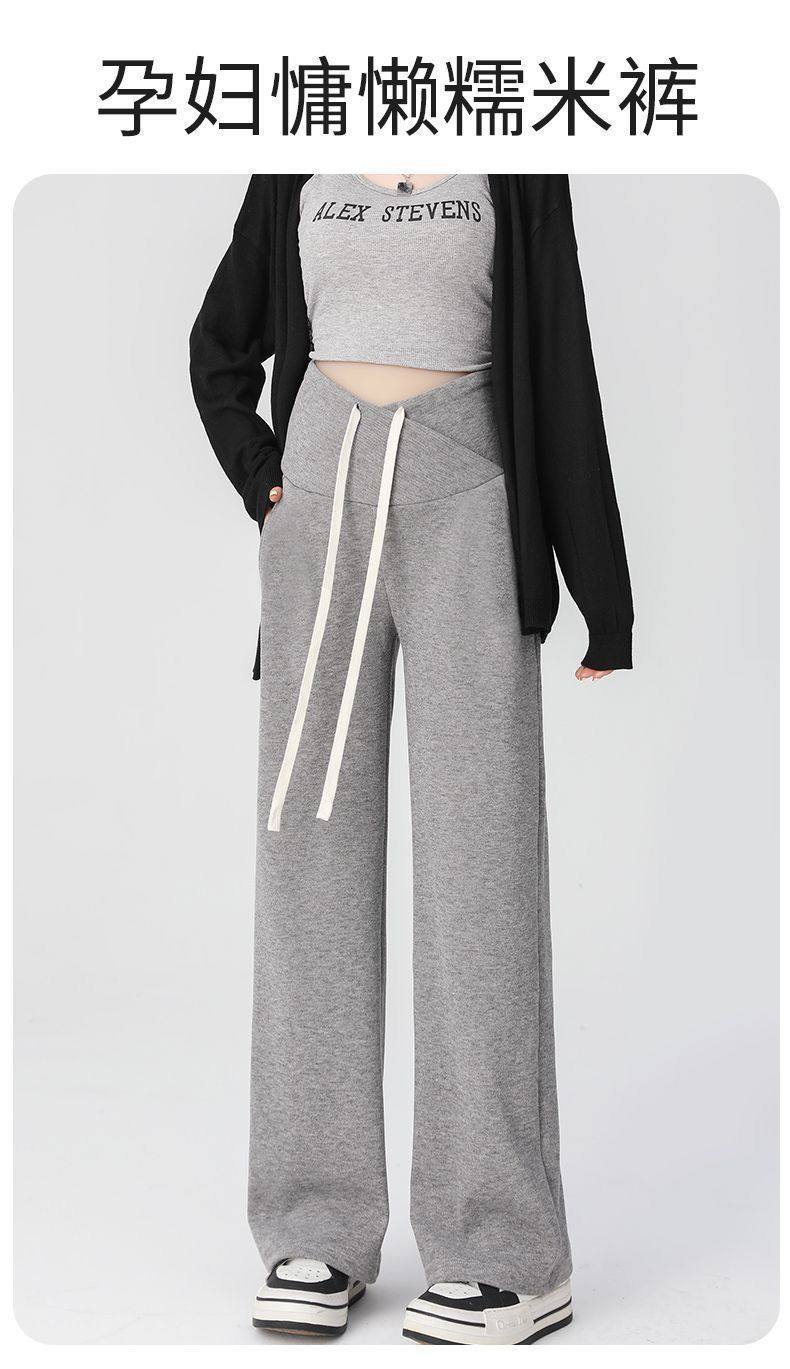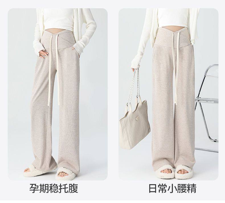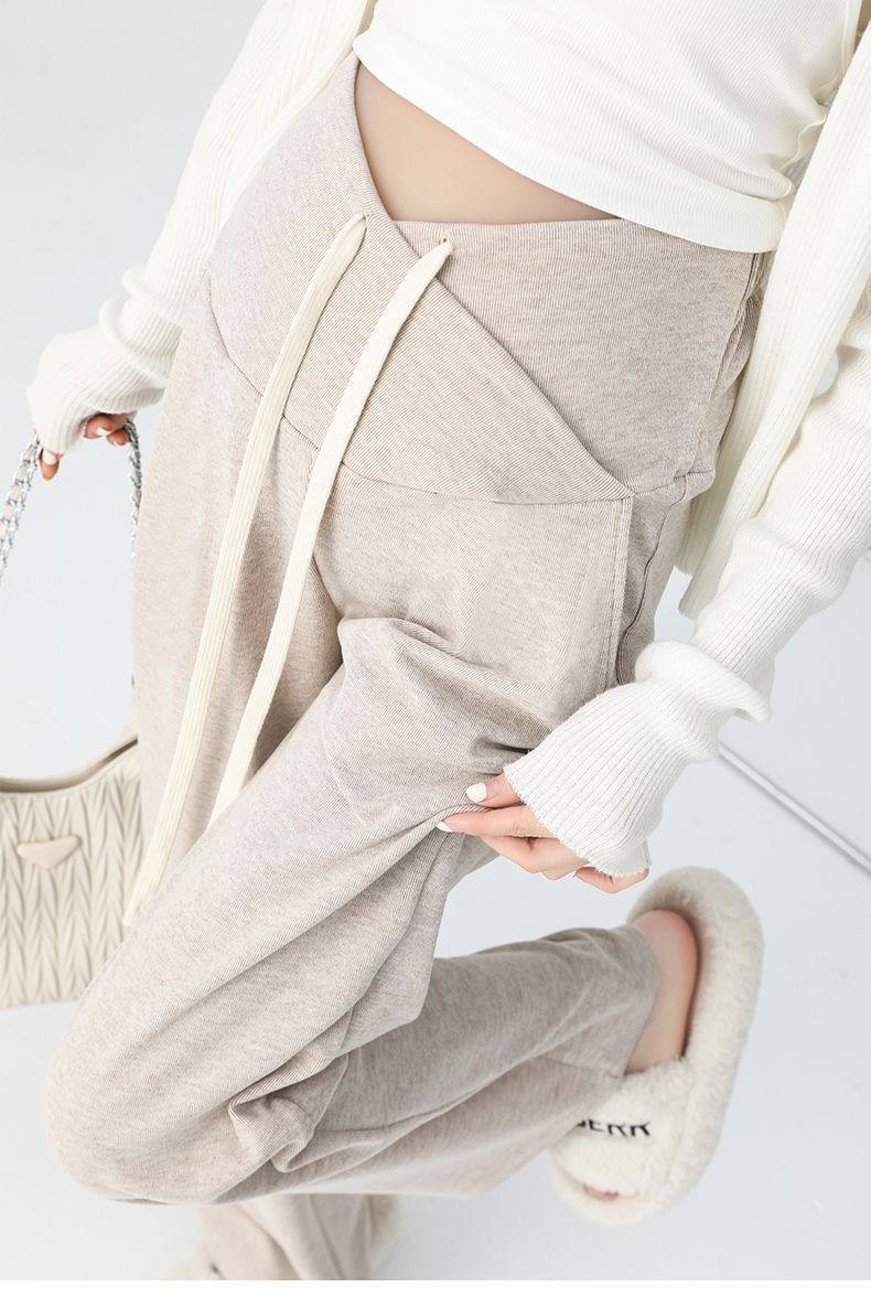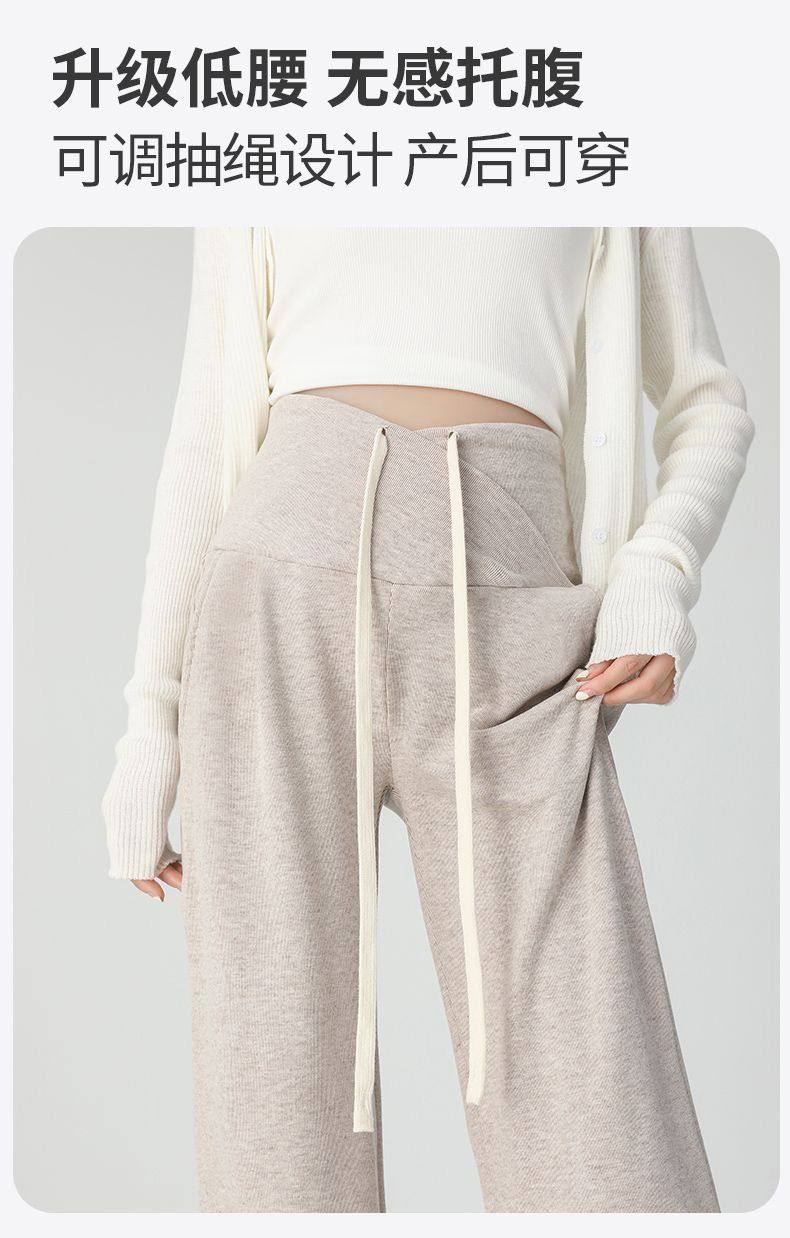Maternity Pants for Spring and Autumn, Suitable for Wearing Outside, Can Be Worn after Giving Birth, Winter Fleece-Lined, Loose Casual Drawstring Straight Wide-Leg Pants