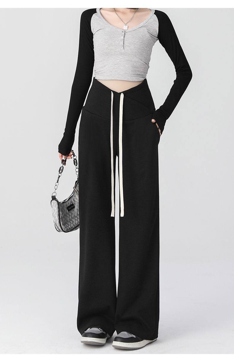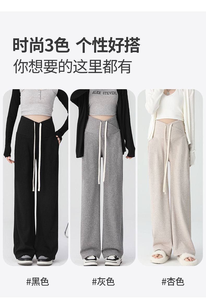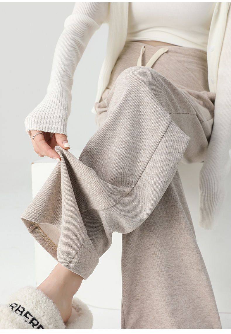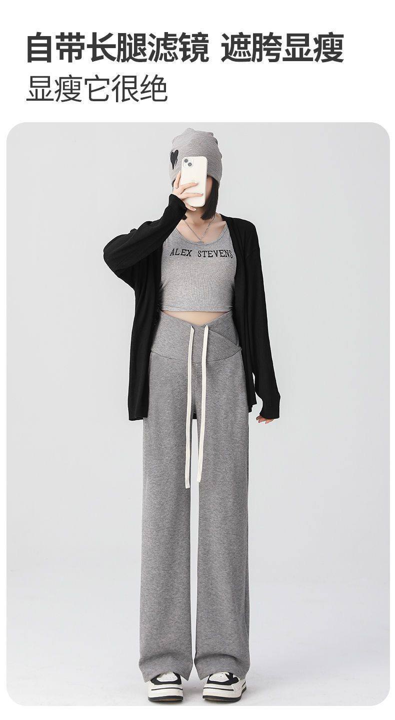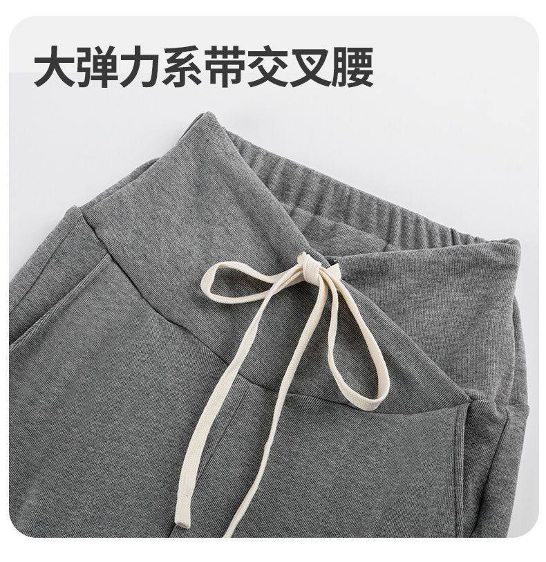 Maternity Pants for Spring and Autumn, Suitable for Wearing Outside, Can Be Worn after Giving Birth, Winter Fleece-Lined, Loose Casual Drawstring Straight Wide-Leg Pants