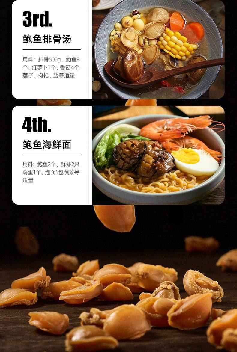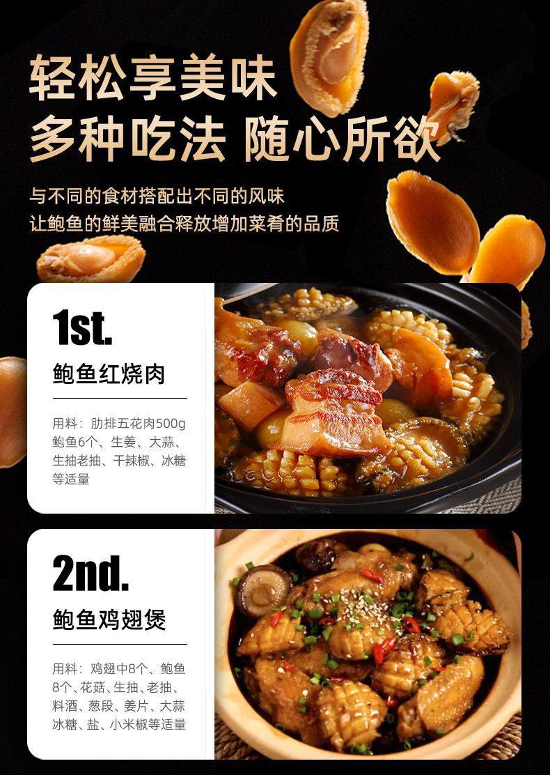 | Packaging specifications | Dried abalone (medium size) 50g [approximately 10-12 pieces] - [dongshan dried abalone] - crazy discount!,Large dried abalone 50g [approximately 5-6 pieces] - [dongshan dried abalone] - crazy discount!,Dried abalone (medium size) 100g [approximately 20-24 pieces] - [dongshan dried abalone] - crazy discount!,Large dried abalone 100g [approximately 10-12 pieces] - [dongshan dried abalone] - crazy discount!,Dried abalone (medium size) 250g [approximately 50-60 pieces] - [dongshan dried abalone] - crazy discount!,Large dried abalone 250g [about 25-30 pieces]-[dongshan dried abalone]-crazy discount,Extra large dried abalone 250g [approximately 19-20 pieces] - [dongshan dried abalone] - crazy discount!,Extra large dried abalone 250g [approximately 14-15 pieces] - [dongshan dried abalone] - crazy discount!,Dried abalone (medium size) 500g [approx. 100 pieces] - [dongshan dried abalone] - crazy discount!,Large dried abalone 500g [approximately 50-60 pieces] - [dongshan dried abalone] - crazy discount!,Extra large dried abalone 500g [about 38-40 pieces]-[dongshan dried abalone]-crazy discount,Extra large dried abalone 500g [about 28-30 pieces]-[dongshan dried abalone]-crazy discount |