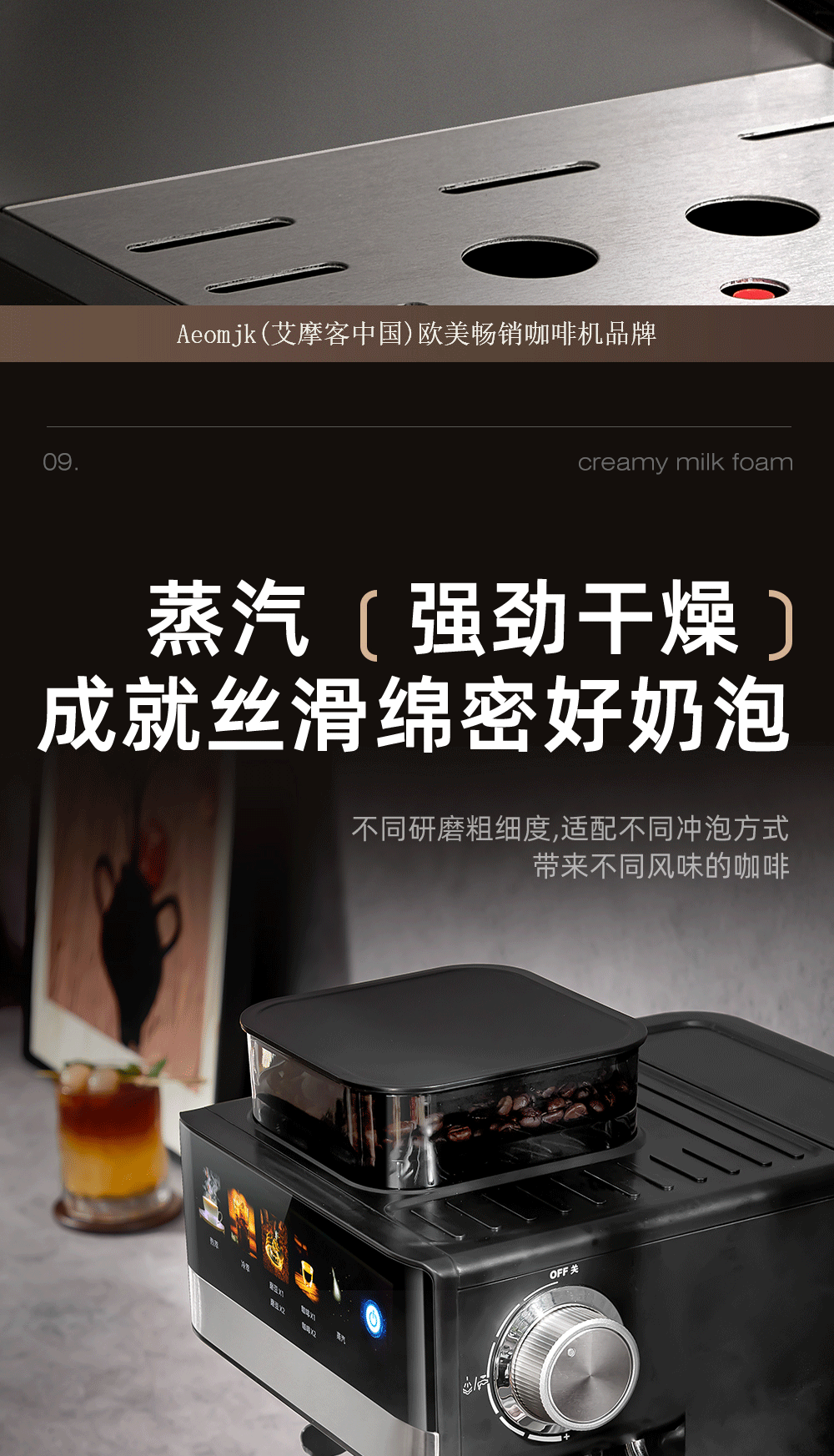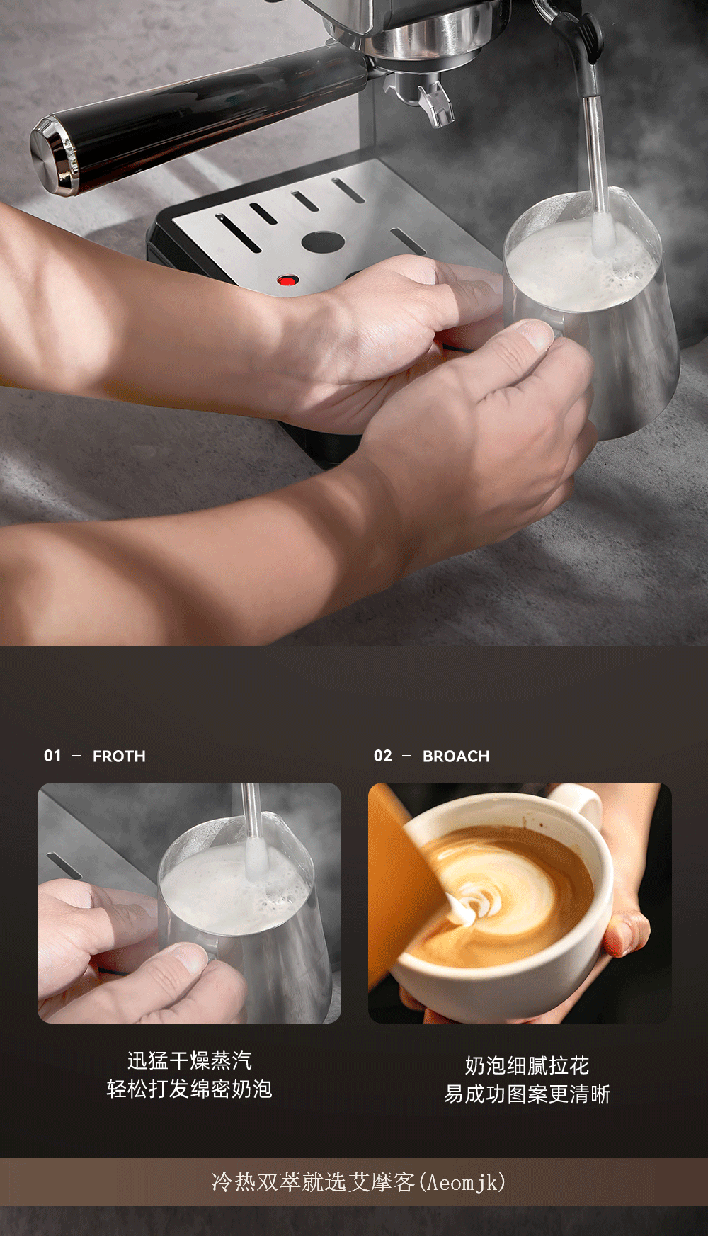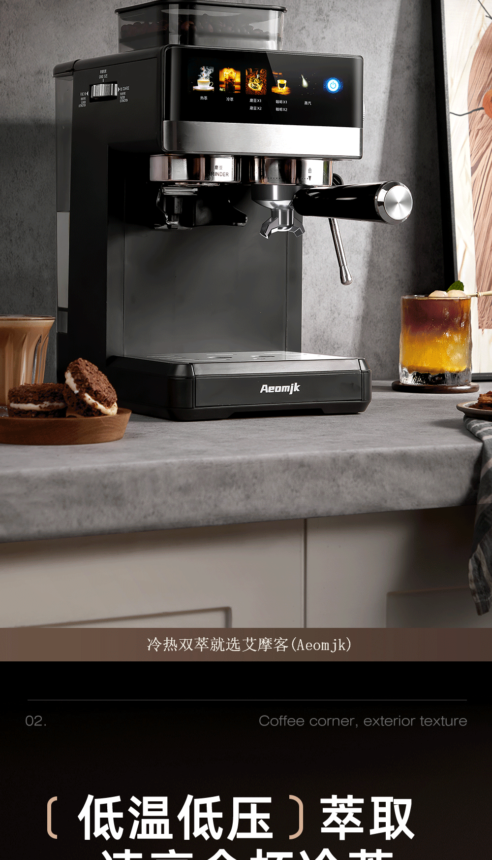 Aeomjk Temperature-Controlled Semi-Automatic Cold Brew Grinding Integrated Italian-Style Home and Commercial Pump-Type Steam Milk Frother Coffee Machine