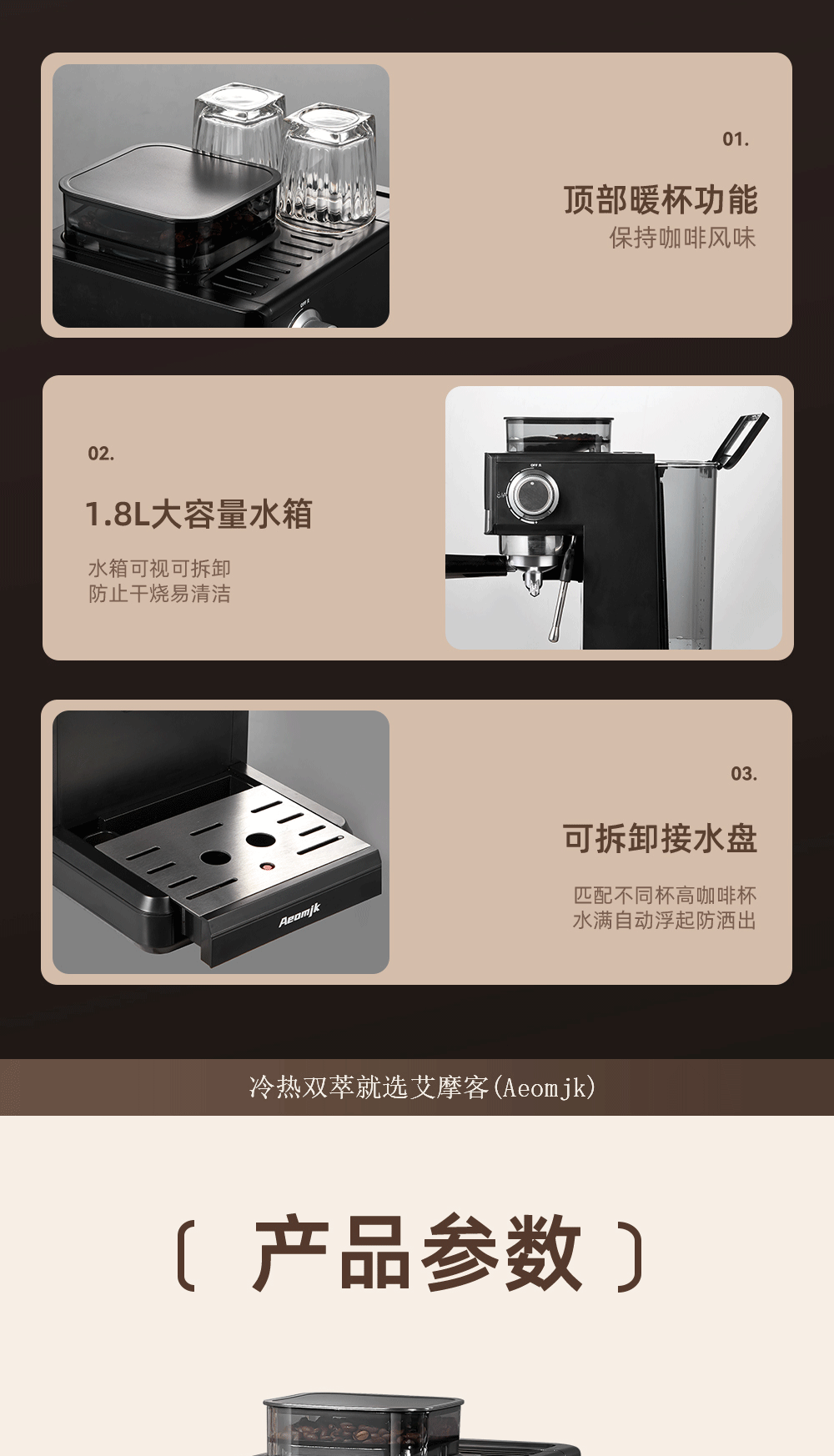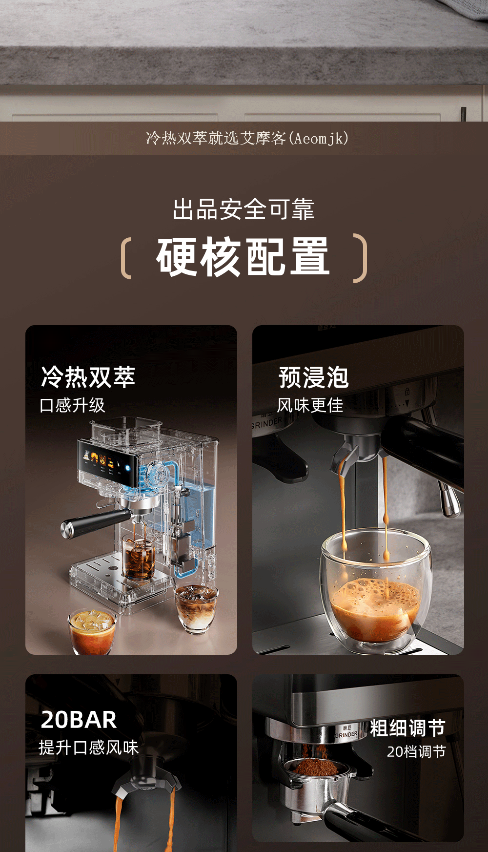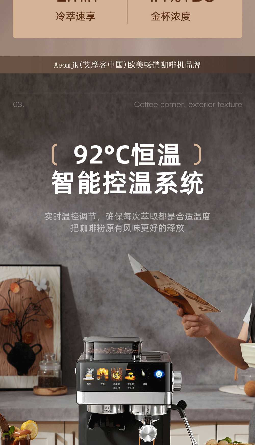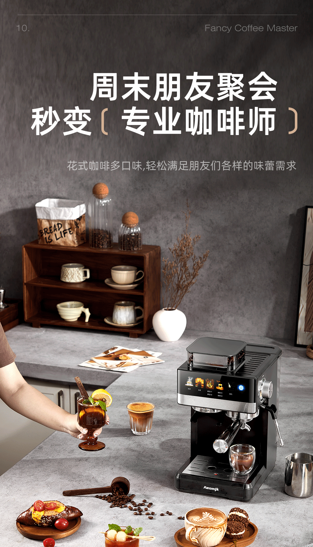 Aeomjk Temperature-Controlled Semi-Automatic Cold Brew Grinding Integrated Italian-Style Home and Commercial Pump-Type Steam Milk Frother Coffee Machine