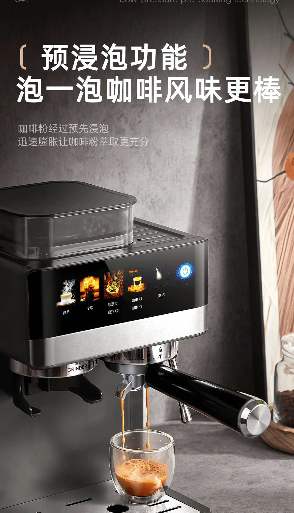 | Function | Dry grinding,Steam,Lcd display,Heating,Automatic cleaning,Temperature control |