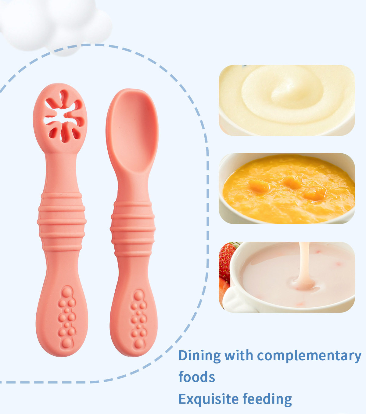 Cross-Border Silicone Spoon Baby Food Supplement Licking Spoon Baby Learning to Eat Training Silicone Soft Spoon Rice Cereal Feeding Sticky Spoon