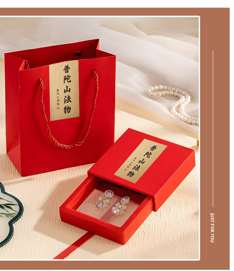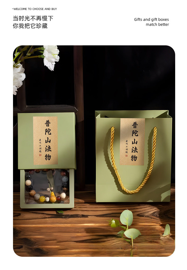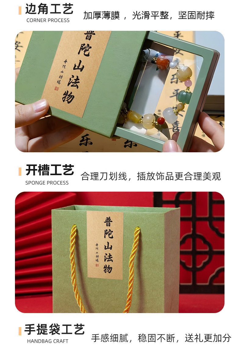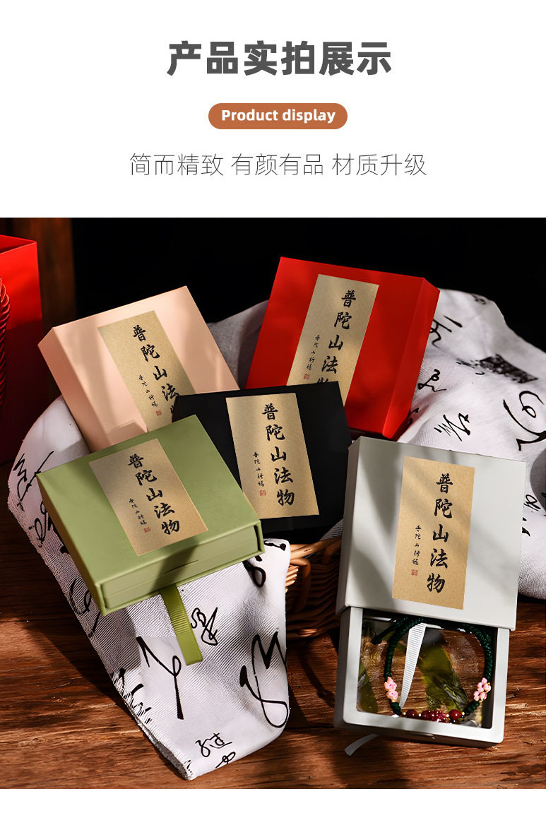 Temple Bracelet Box High-End Pe Film Pull-Out Putuo Mountain Buddhist Beads Bracelet Packaging Box Can Be Customized