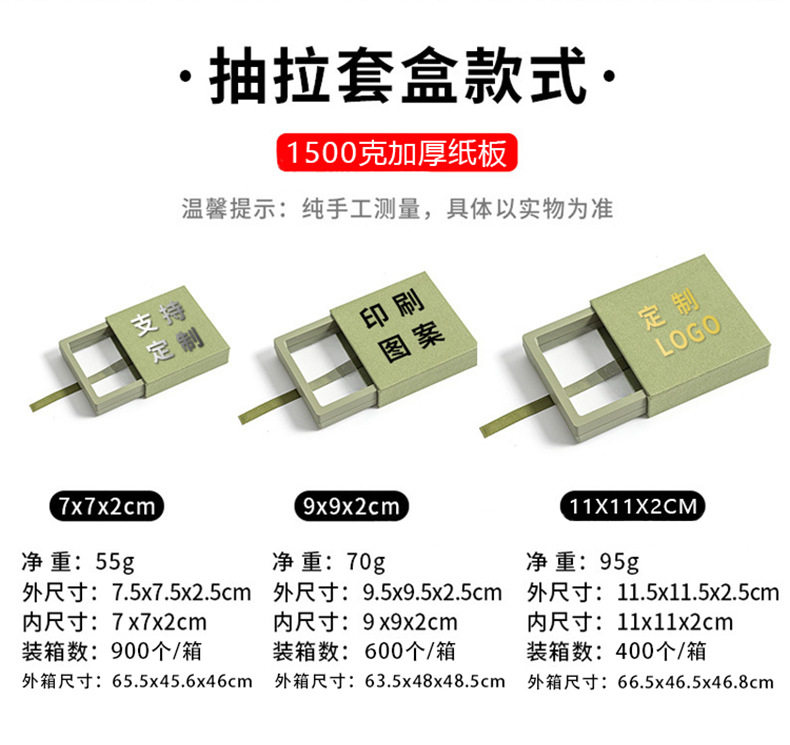 | Specifications and models | Red shell + inner box (set) + sticker; 7x7x2cm,Red shell + inner box (set) + stickers; 9x9x2cm,Red shell + inner box (set) + sticker; 11x11x2cm,Red shell + inner box + handbag (set) + sticker; 7x7x2cm,Red shell + inner box + handbag (set) + sticker; 9x9x2cm,Red shell + inner box + handbag (set) + sticker; 11x11x2cm,Green shell + inner box (set) + stickers; 7x7x2cm,Green shell + inner box (set) + stickers; 9x9x2cm,Green shell + inner box (set) + stickers; 11x11x2cm,Green shell + inner box + handbag (set) + sticker; 7x7x2cm,Green shell + inner box + handbag (set) + sticker; 9x9x2cm,Green shell + inner box + handbag (set) + sticker; 11x11x2cm,Black shell + inner box (set) + stickers; 7x7x2cm,Black shell + inner box (set) + stickers; 9x9x2cm,Black shell + inner box (set) + stickers; 11x11x2cm,Black shell + inner box + handbag (set) + sticker; 7x7x2cm,Black shell + inner box + handbag (set) + sticker; 9x9x2cm,Black shell + inner box + handbag (set) + sticker; 11x11x2cm,Pink shell + inner box (set) + sticker; 7x7x2cm,Pink shell + inner box (set) + sticker; 9x9x2cm,Pink shell + inner box (set) + sticker; 11x11x2cm,Pink shell + inner box + handbag (set) + sticker; 7x7x2cm,Pink shell + inner box + handbag (set) + sticker; 9x9x2cm,Pink shell + inner box + handbag (set) + sticker; 11x11x2cm,White shell + inner box (set) + stickers; 7x7x2cm,White shell + inner box (set) + stickers; 9x9x2cm,White shell + inner box (set) + sticker; 11x11x2cm,White shell + inner box + handbag (set) + sticker; 7x7x2cm,White shell + inner box + handbag (set) + sticker; 9x9x2cm,White shell + inner box + handbag (set) + sticker; 11x11x2cm |