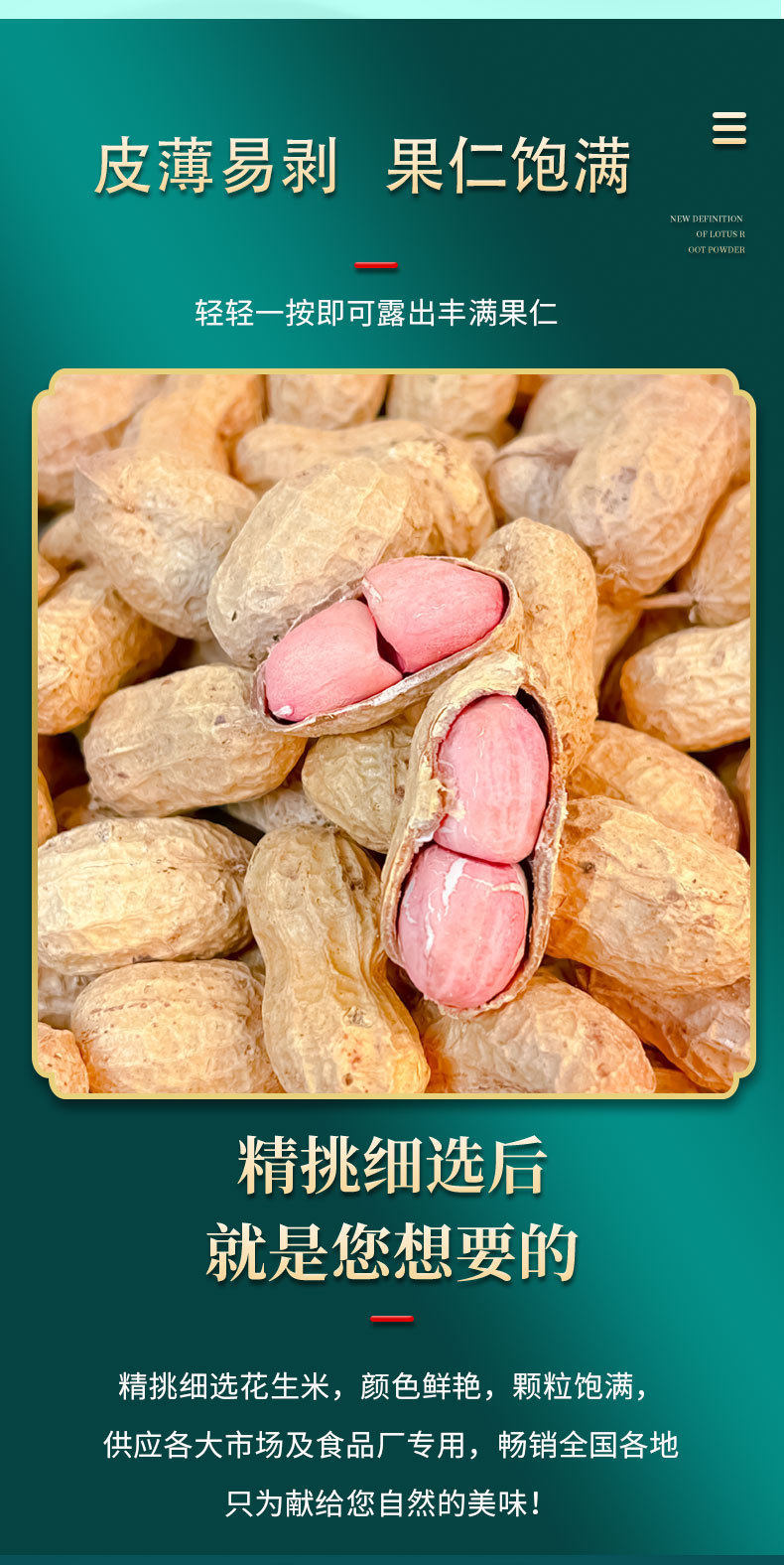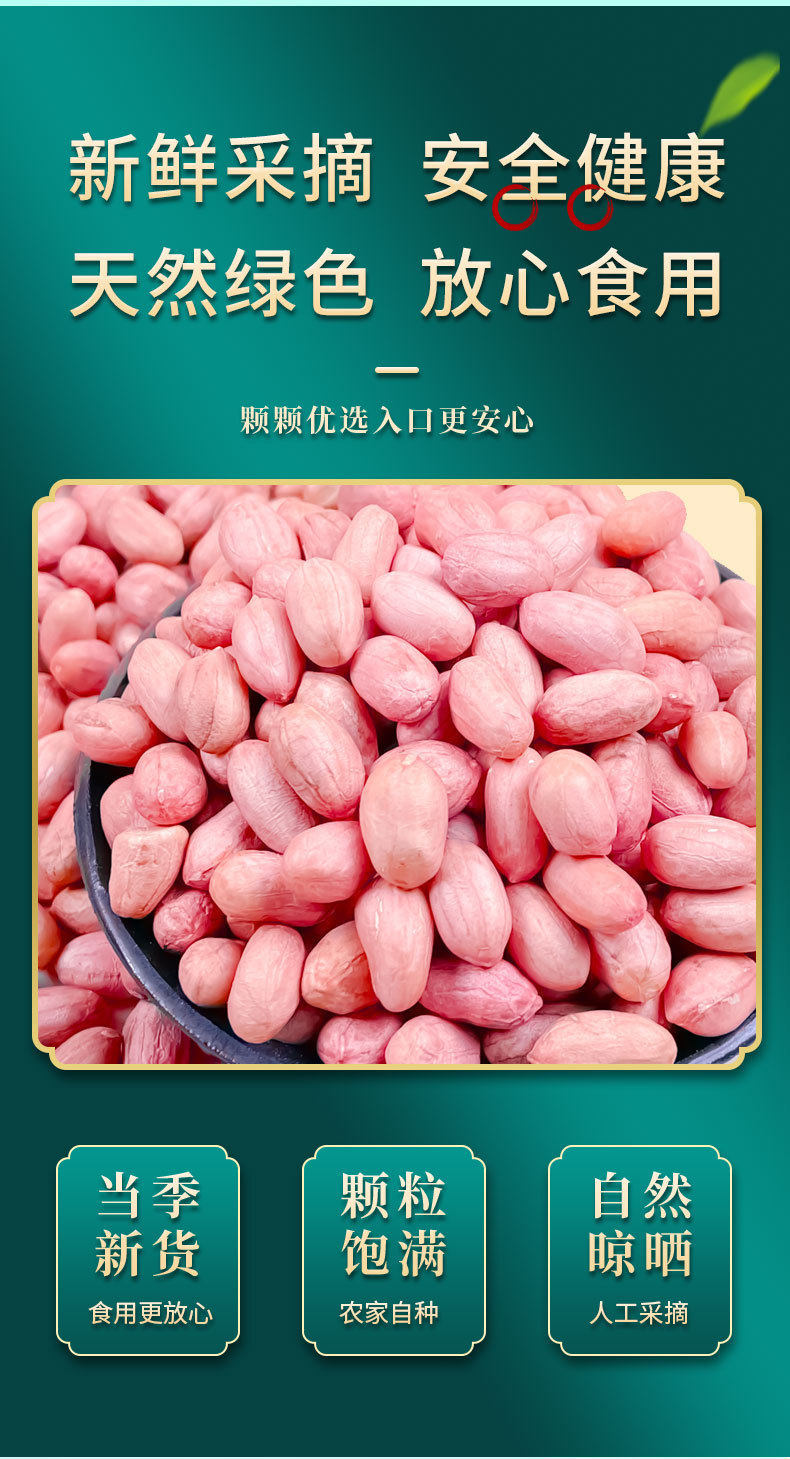 | Packaging specifications | 50g this year’s peanuts without desiccant,150g this year’s peanuts without desiccant,250g this year’s peanuts without desiccant,500g this year’s peanuts without desiccant |
