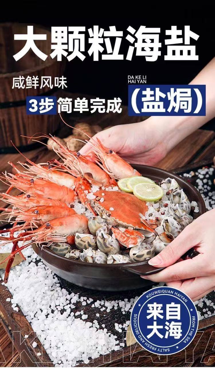 | Packaging specifications | Large sea salt baked seasoning 500g*1 bag,Large sea salt baked seasoning 500g*3 bags,Large sea salt baked seasoning 500g*5 bags |