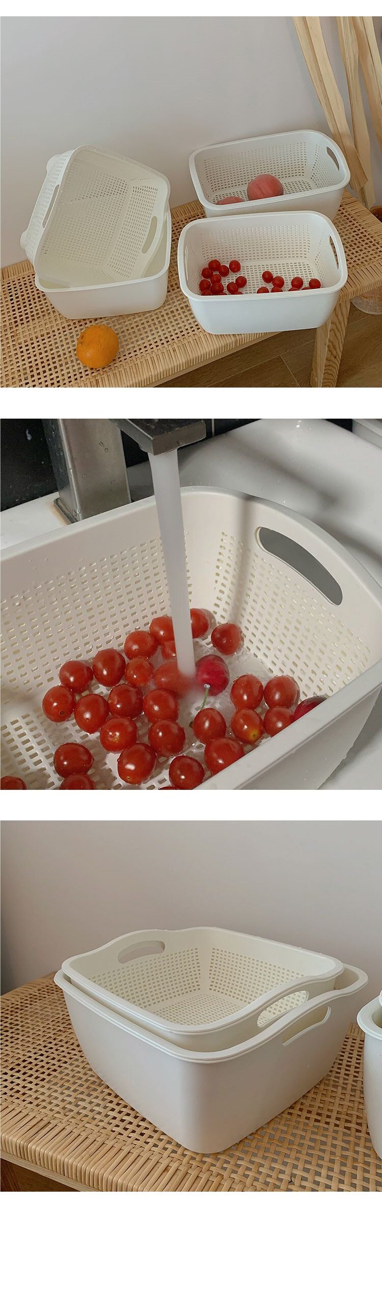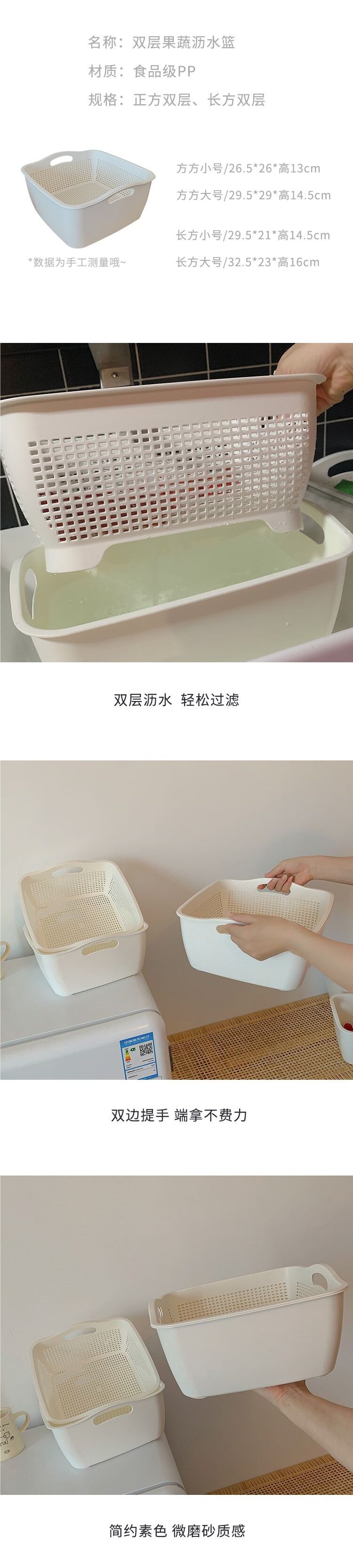 Double-Layer Plastic Kitchen Sink Strainer Basket for Washing Vegetables and Fruits, Household Fruit Tray