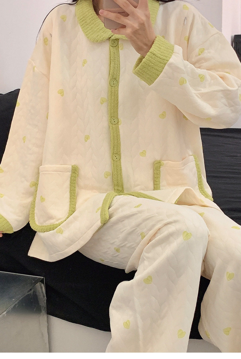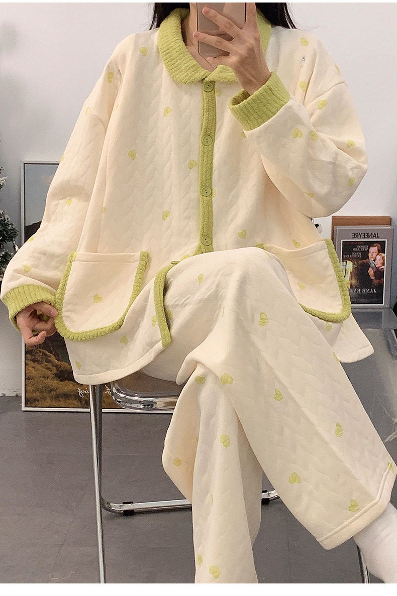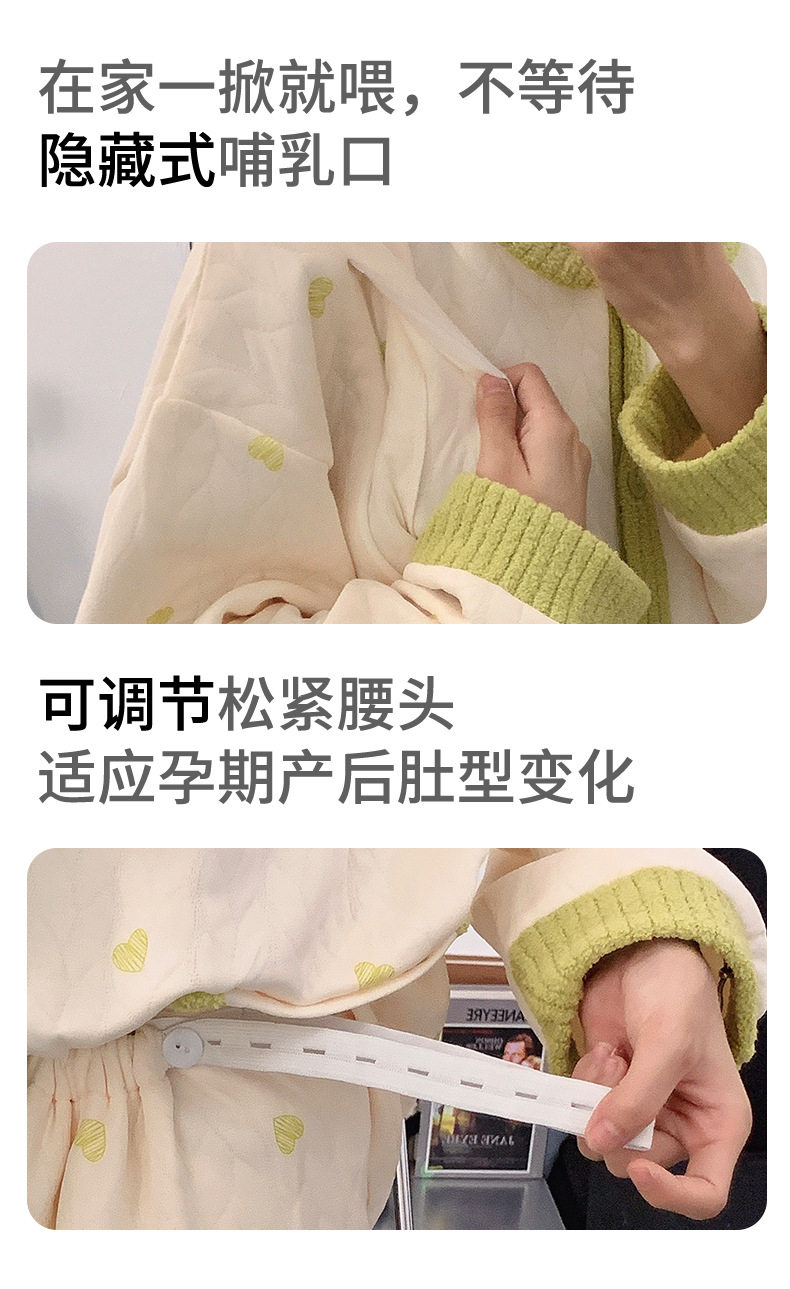 Autumn and Winter Air Cotton Maternity Pajamas, Postpartum Confinement Clothes, Warm Breastfeeding Clothes, Loose Suits, Home Clothes for Women