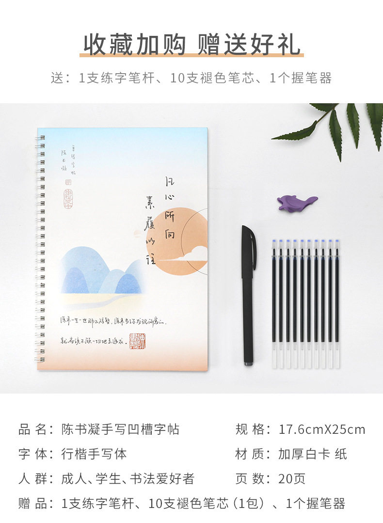 | Specifications | Chen shuning grooved copybook (20 refills),Chen shuning's copybook,Chen shuning grooved copybook (10 refills) |