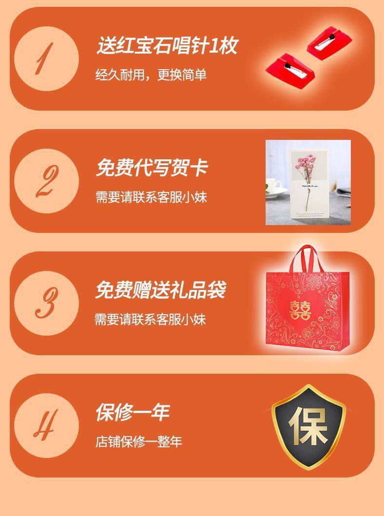 | Color | 3w plug-in classic model + stylus, entry-level vinyl function, no bluetooth,5w plug-in upgrade + stylus, vinyl playback with bluetooth,10w charging upgraded model + stylus, rechargeable sound quality upgrade with bluetooth,If you need a gift bag or a greeting card, please,10w charging top version + stylus bluetooth/u disk/vinyl function,5w plug-in upgrade + classical film + stylus, vinyl playback with bluetooth,10w charging upgraded model + classic film + stylus, rechargeable with bluetooth,10w charging top version + classic film + stylus bluetooth usb function,5w plug-in upgrade + night shanghai + stylus, vinyl playback with bluetooth,5w plug-in upgrade + teresa teng + stylus, vinyl playback with bluetooth,10w black cd model + stylus cd/vinyl all-in-one machine,10w brown cd model + stylus cd/vinyl all-in-one machine,10w charging upgraded model + night shanghai + stylus rechargeable with bluetooth,10w charging upgraded model + teresa teng + stylus rechargeable with bluetooth,10w charging top version + night shanghai + stylus bluetooth usb flash drive function,10w charging top model + teresa teng + stylus bluetooth usb flash drive function |