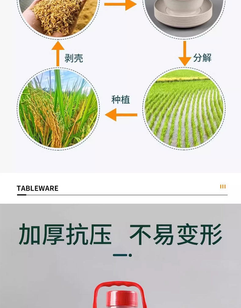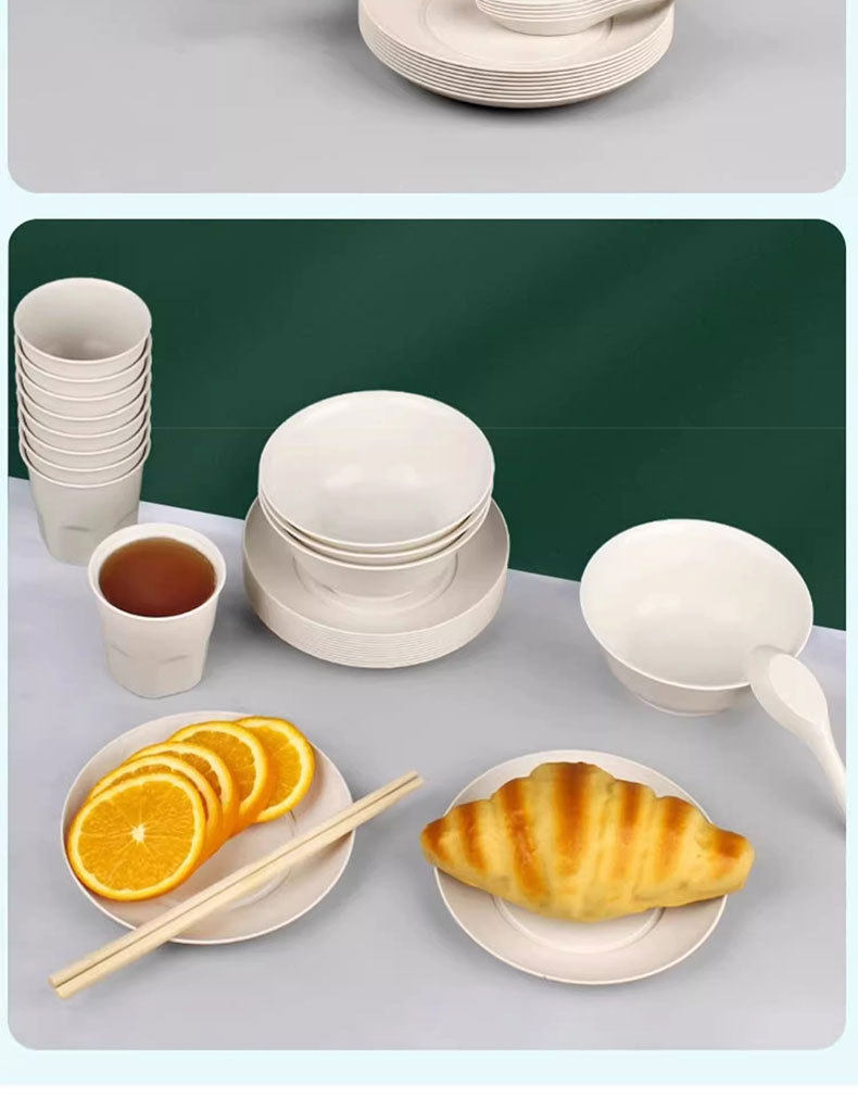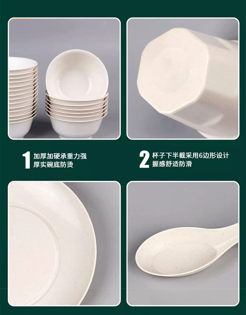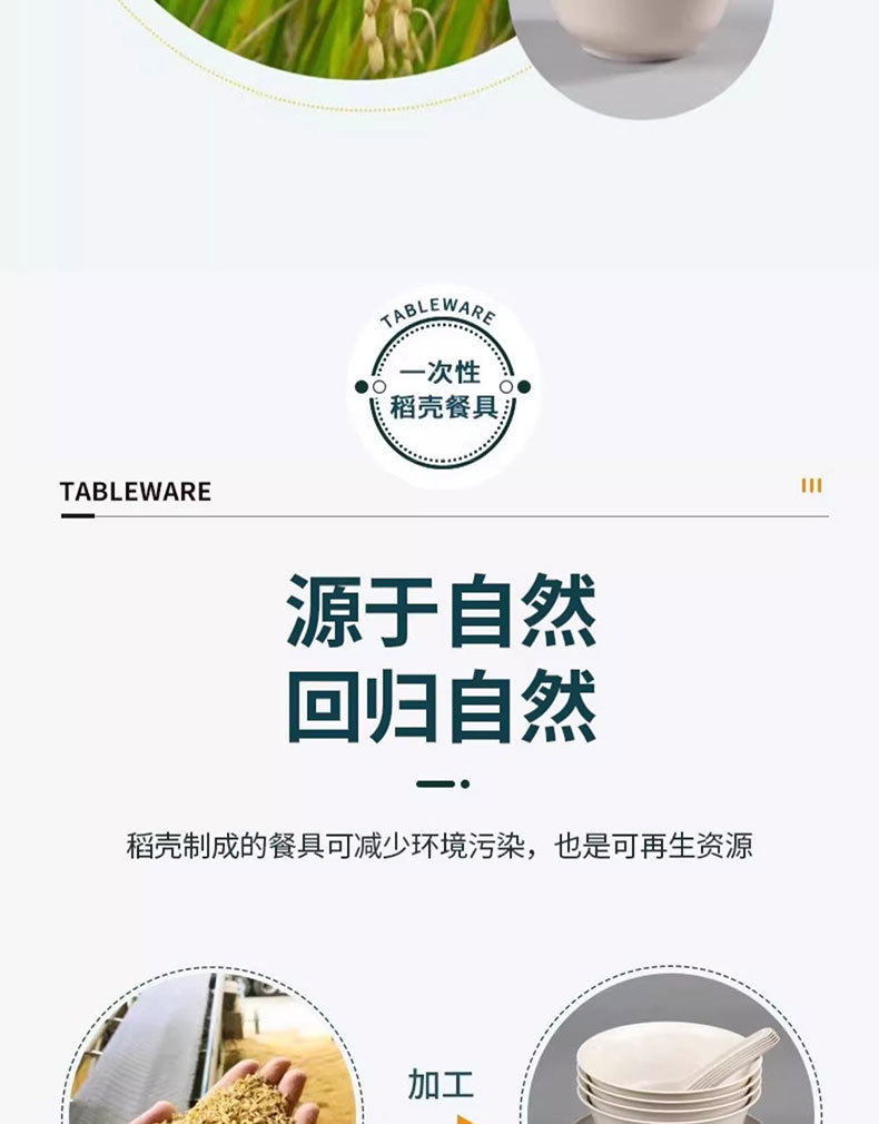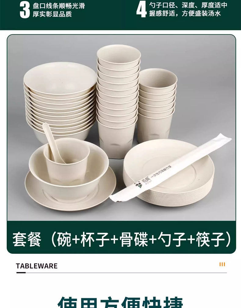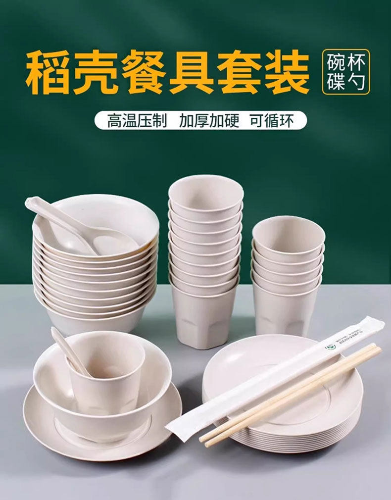 Rice Husk Disposable Tableware Household Rice Bowl Food-Grade Tableware Set Three-Piece Set Thickeneded High Temperature Resistant Dinner Party Outdoor