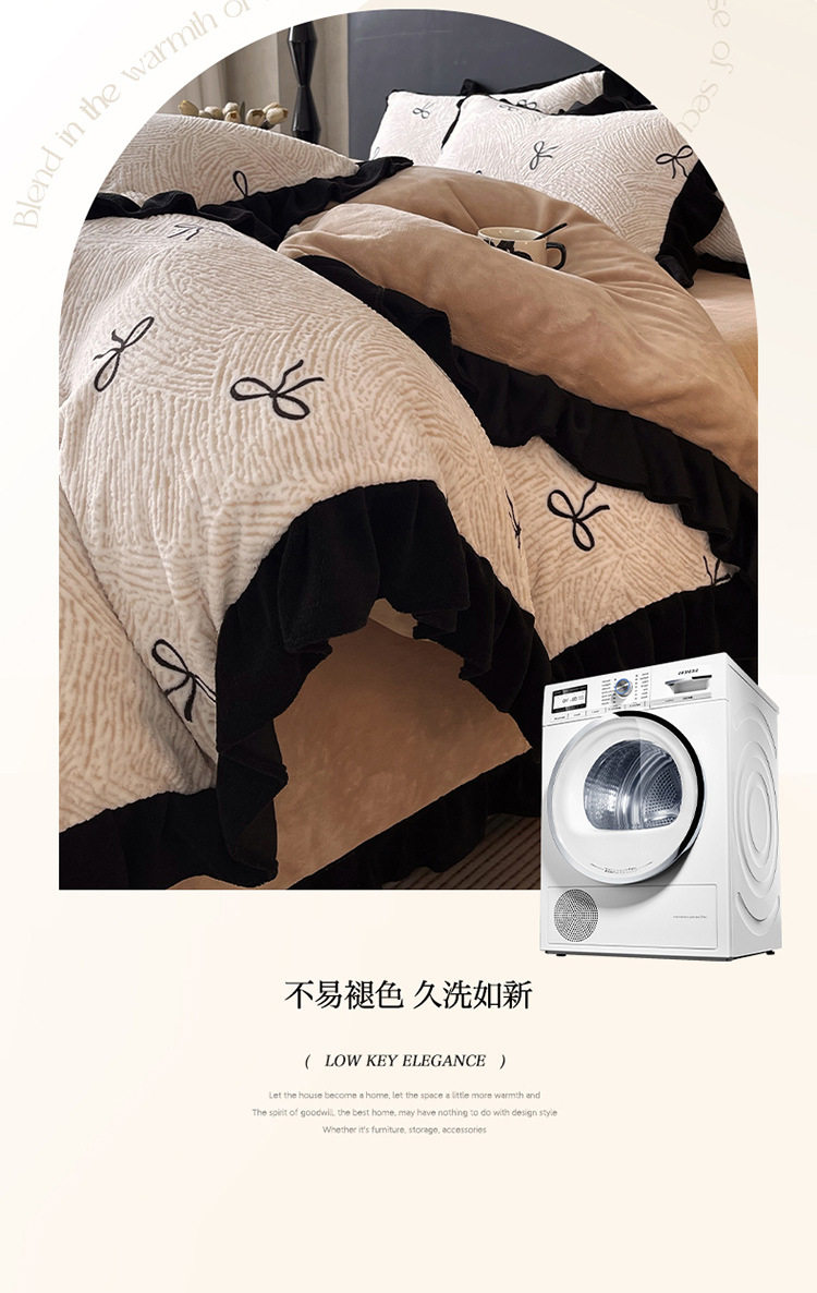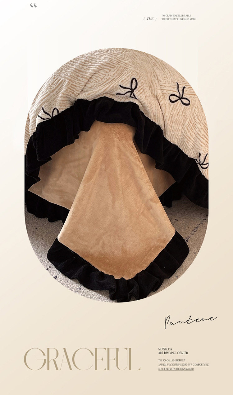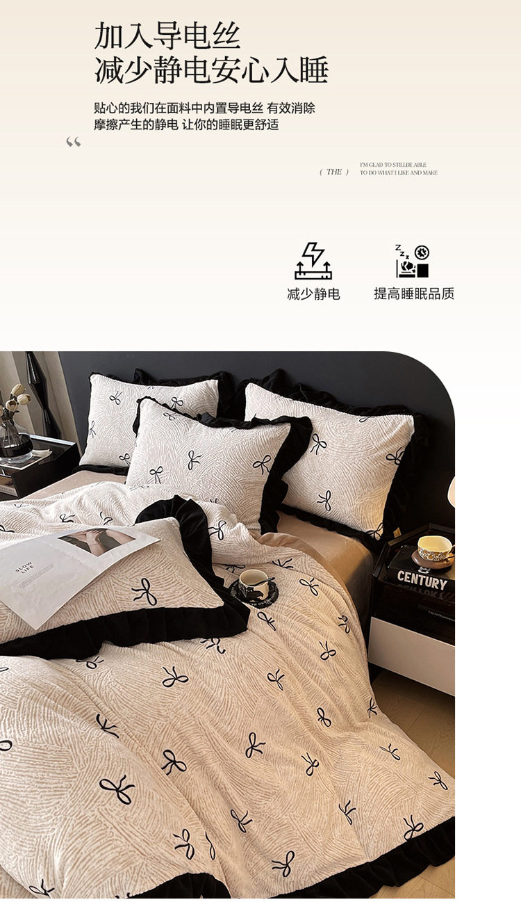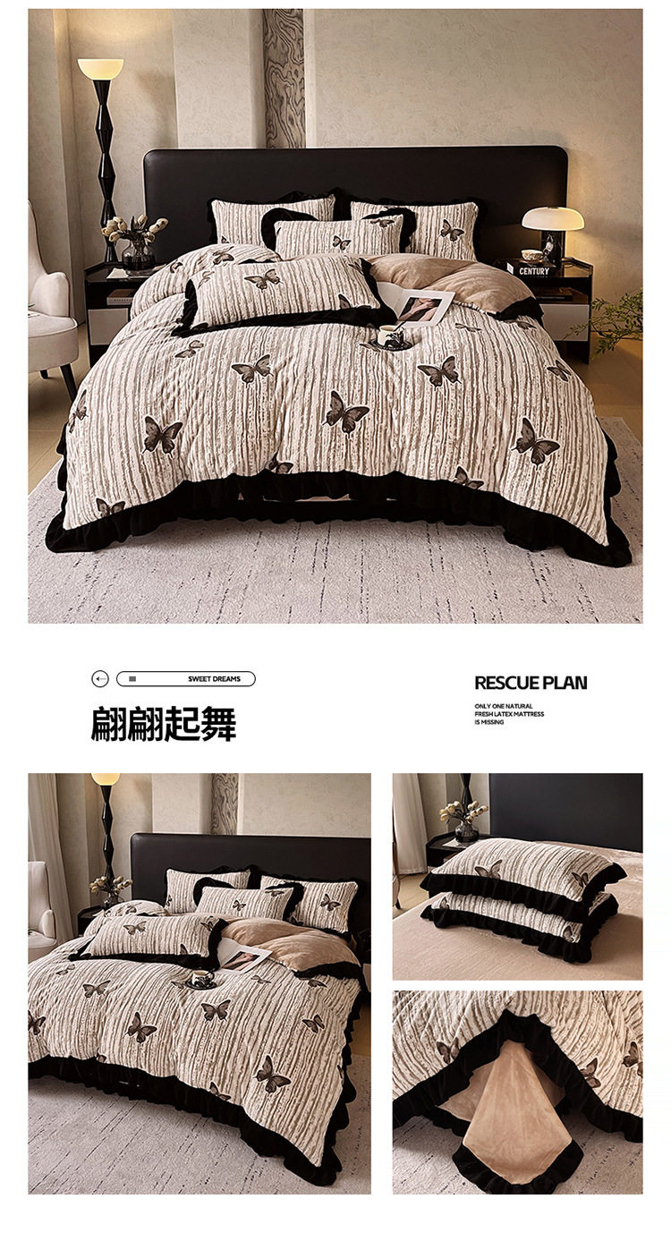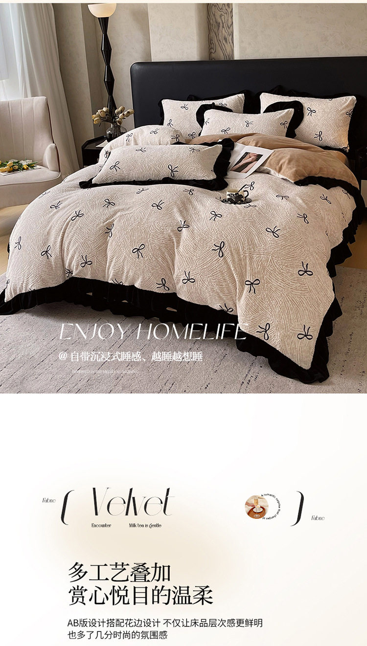 Plush Retro Style Hepburn Light French High Weight Milk Velvet Fully Matte Stereo Relief French Lace Four-Piece Set