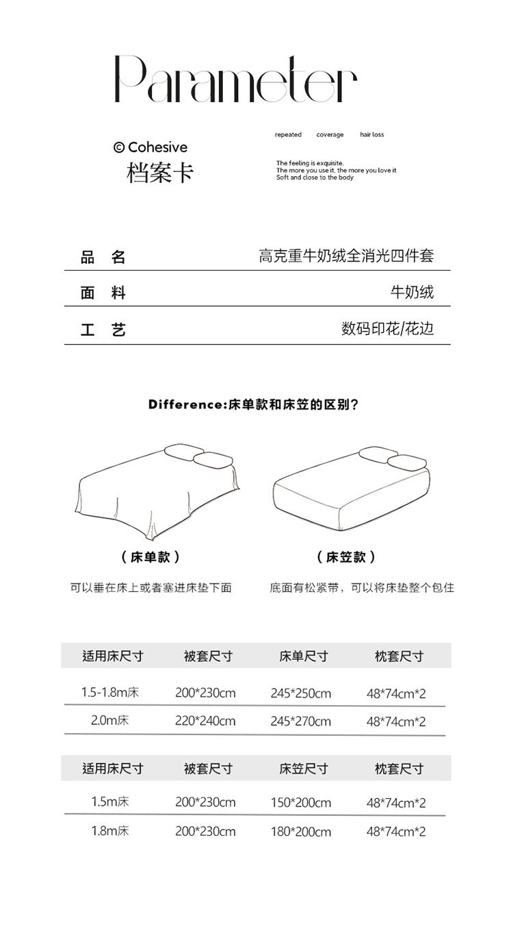 | Size specifications | 1.5m bed sheet four-piece set [quilt cover 200*230cm],1.8m bed sheet four-piece set [quilt cover 200*230cm],2.0m bed sheet four-piece set [quilt cover 220*240cm],1.5m fitted sheet set of four [quilt cover 200*230cm],1.8m fitted sheet set of four [quilt cover 200*230cm] |