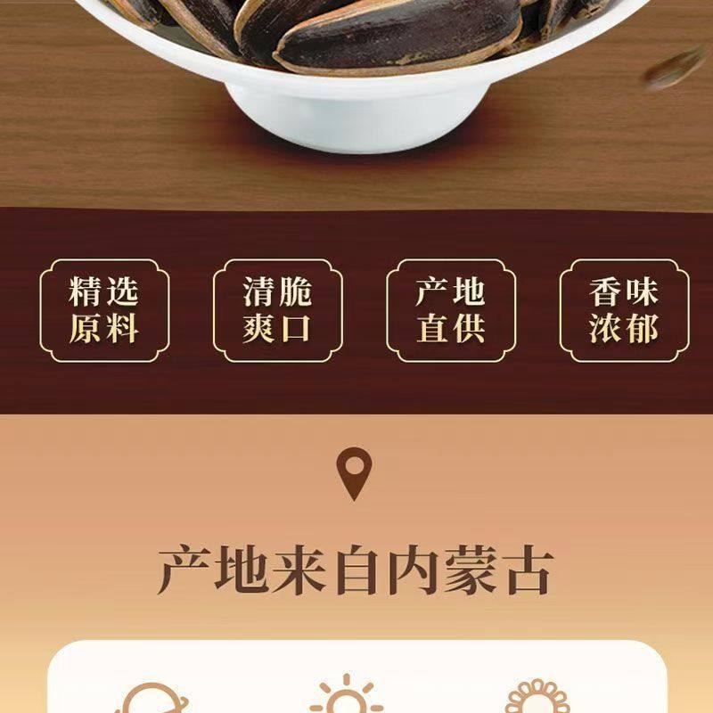 | Taste | 【net weight 0.5kg 】caramel flavored sunflower seeds,【net weight 1.0kg 】caramel flavored sunflower seeds,【net weight 1.5kg 】caramel flavored sunflower seeds,【net weight 2.5kg 】caramel flavored sunflower seeds,【net weight 0.5kg 】walnut flavored sunflower seeds,【net weight 1.0kg 】walnut flavored sunflower seeds,【net weight 1.5kg 】walnut flavored sunflower seeds,【net weight 2.5kg 】walnut flavored sunflower seeds,【net weight 0.5kg 】five-flavored sunflower seeds,【net weight 1.0kg 】five-flavored sunflower seeds,【net weight 1.5kg 】five-flavored sunflower seeds,【net weight 2.5kg 】five-flavored sunflower seeds,【net weight 0.5kg 】creamy sunflower seeds,【net weight 1.0kg 】creamy sunflower seeds,【net weight 1.5kg 】creamy sunflower seeds,【net weight 2.5kg 】creamy sunflower seeds,【net weight 0.5kg 】original sunflower seeds,【net weight 1.0kg 】original sunflower seeds,【net weight 1.5kg 】original sunflower seeds,【net weight 2.5kg 】original sunflower seeds,About 80 grams of caramel flavored melon seeds,[combined pack] caramel flavor 0.5kg + walnut flavor 0.5kg,[combined pack] walnuts 0.5kg + red dates 0.5kg,[combined pack] walnut 0.5kg + five spice 0.5kg,[combined pack] red dates 0.5kg + five spice 0.5kg,[combined pack] caramel 0.5kg+red dates 0.5kg,[combined pack] caramel 0.5kg+five spice 0.5kg,[combined pack] cream 0.5kg + five spice 0.5kg |