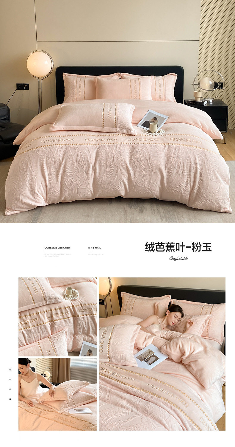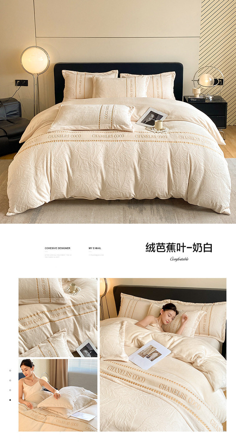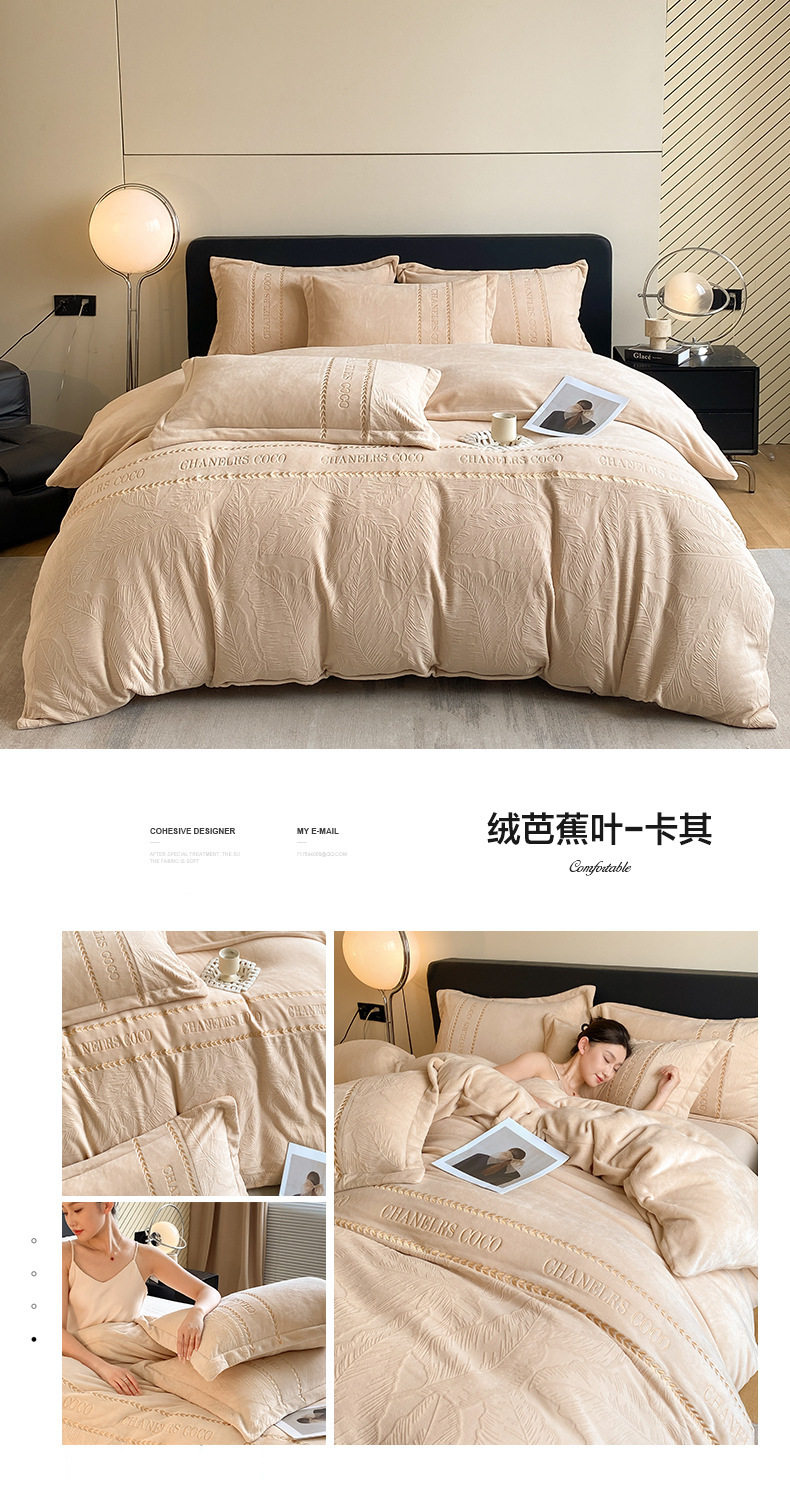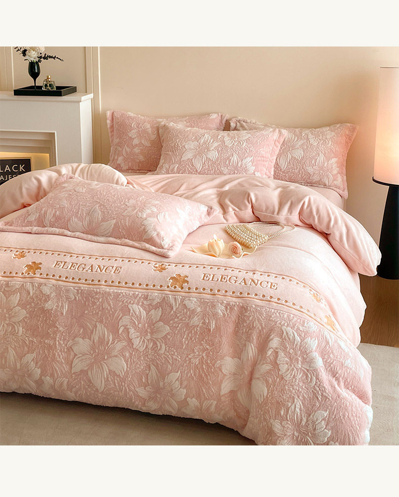 Category a Maternal and Infant Grade Thickeneded Carved Milk Velvet Four-Piece Set Autumn and Winter High Weight Rabbit Fur Warm Bed Four-Piece Set