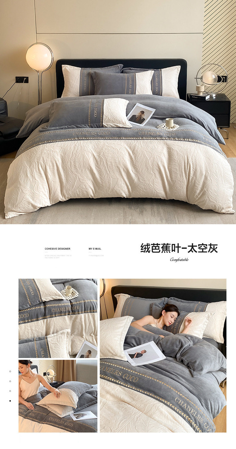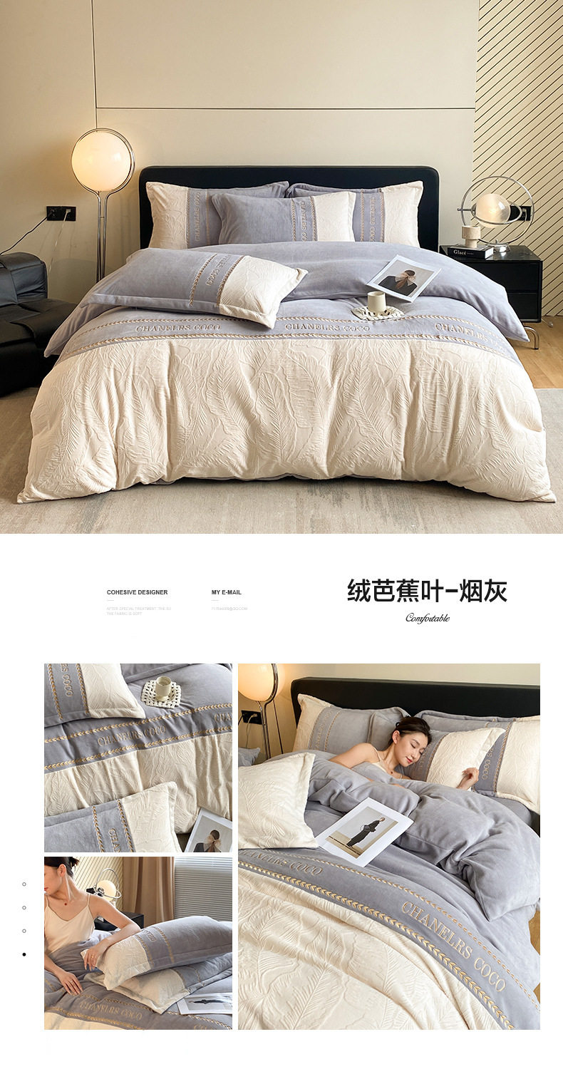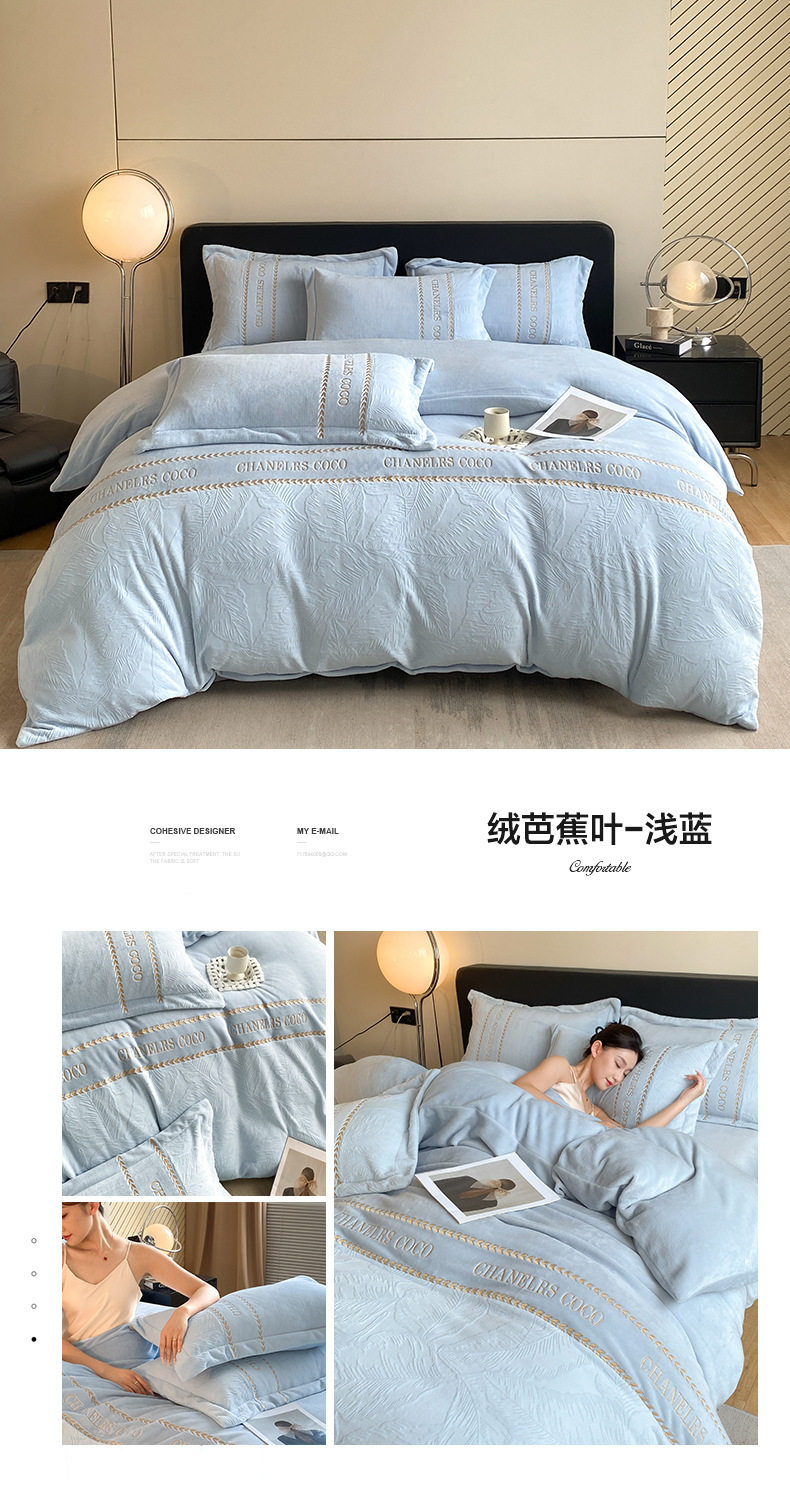 Category a Maternal and Infant Grade Thickeneded Carved Milk Velvet Four-Piece Set Autumn and Winter High Weight Rabbit Fur Warm Bed Four-Piece Set