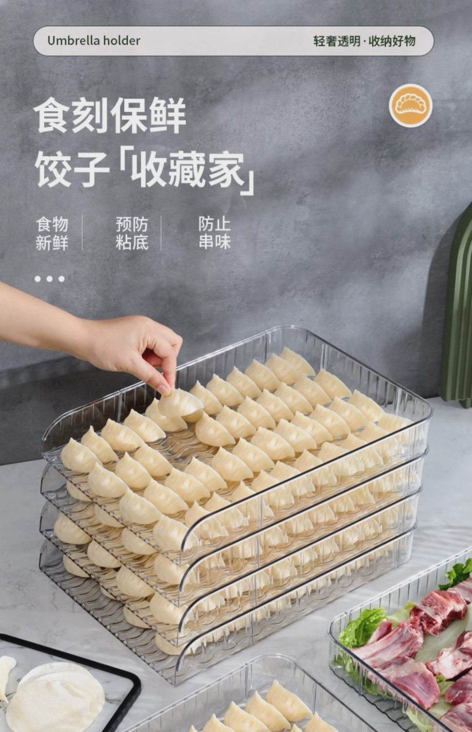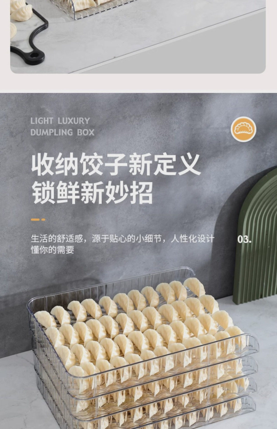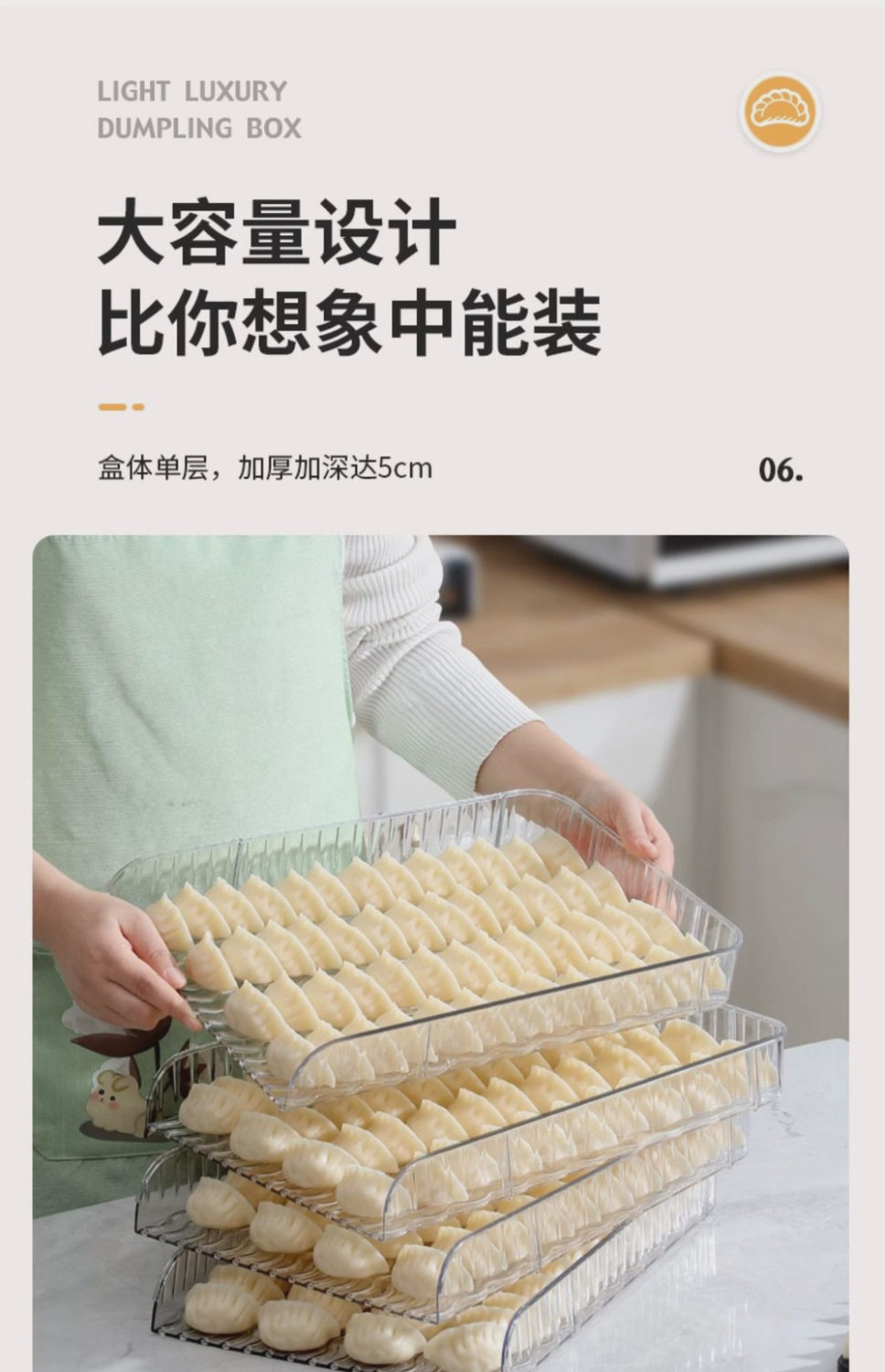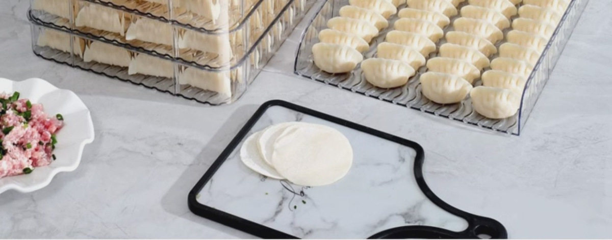 New Large-Capacity Quick-Frozen Special Tray Cover Curtain Household Storage Box Plastic Dumpling Box Narrow Edge Multi-Layer Dumpling Curtain