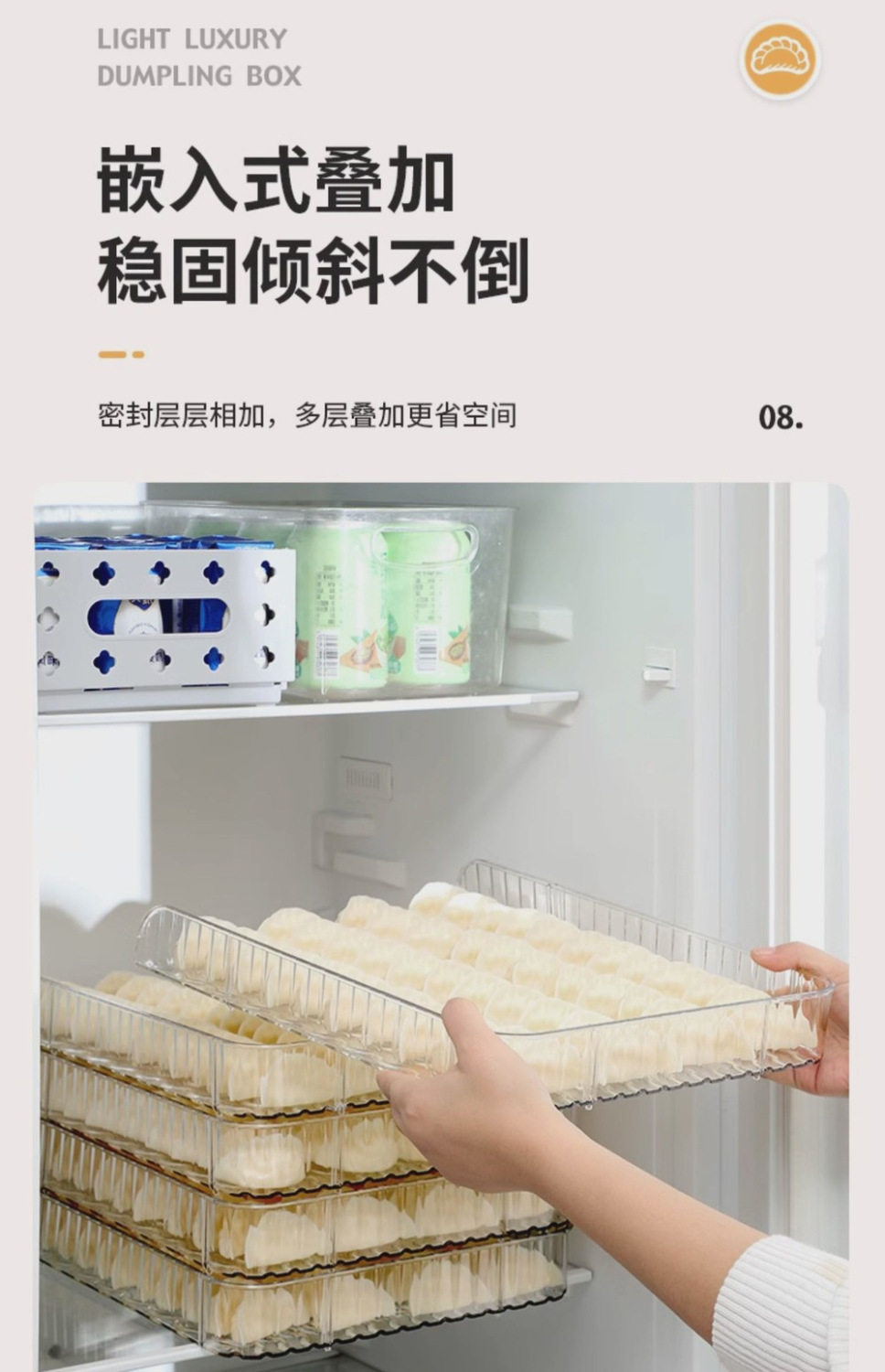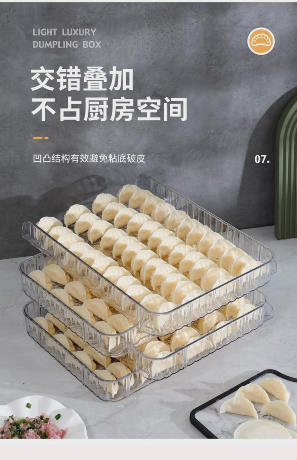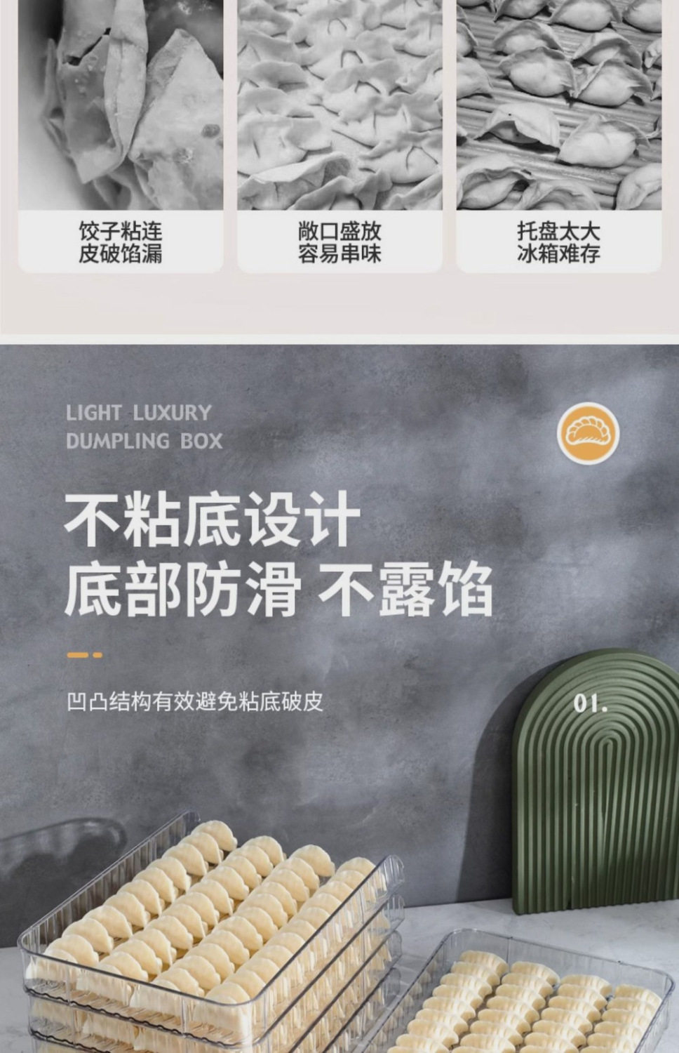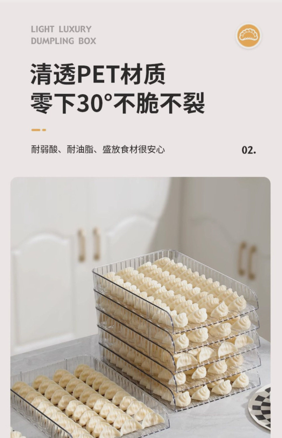New Large-Capacity Quick-Frozen Special Tray Cover Curtain Household Storage Box Plastic Dumpling Box Narrow Edge Multi-Layer Dumpling Curtain