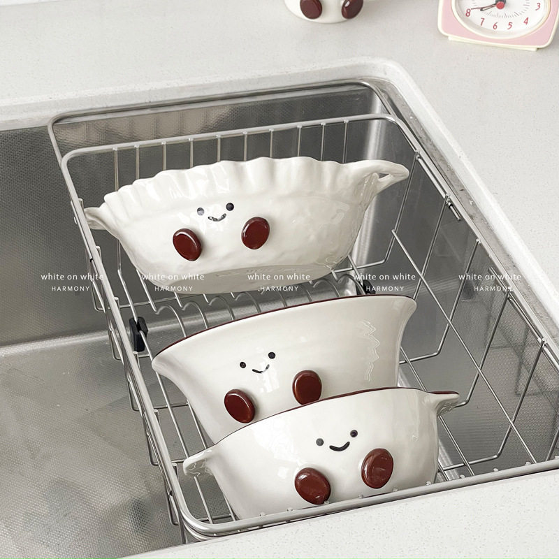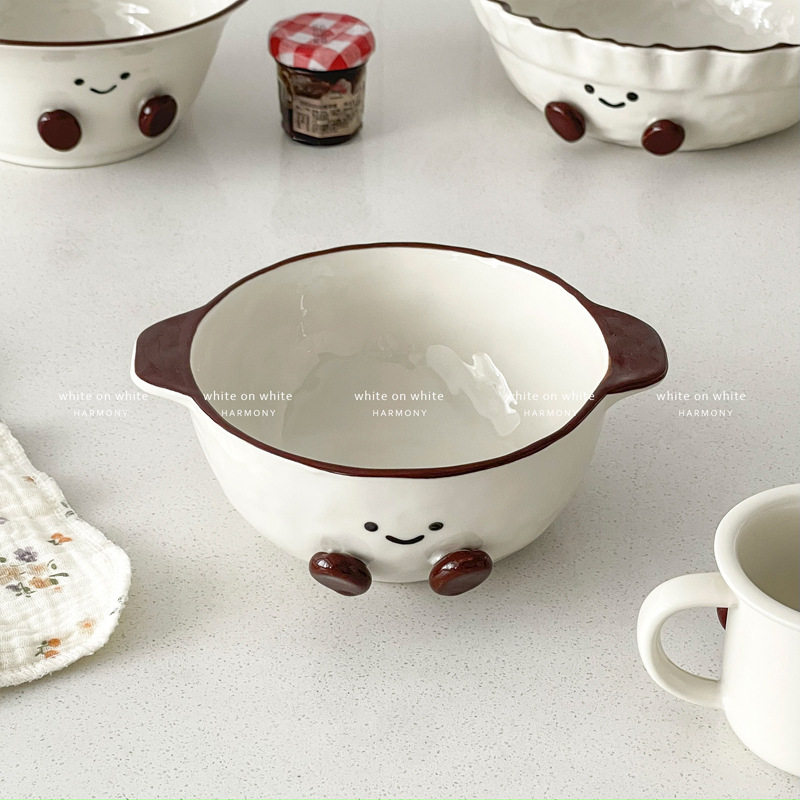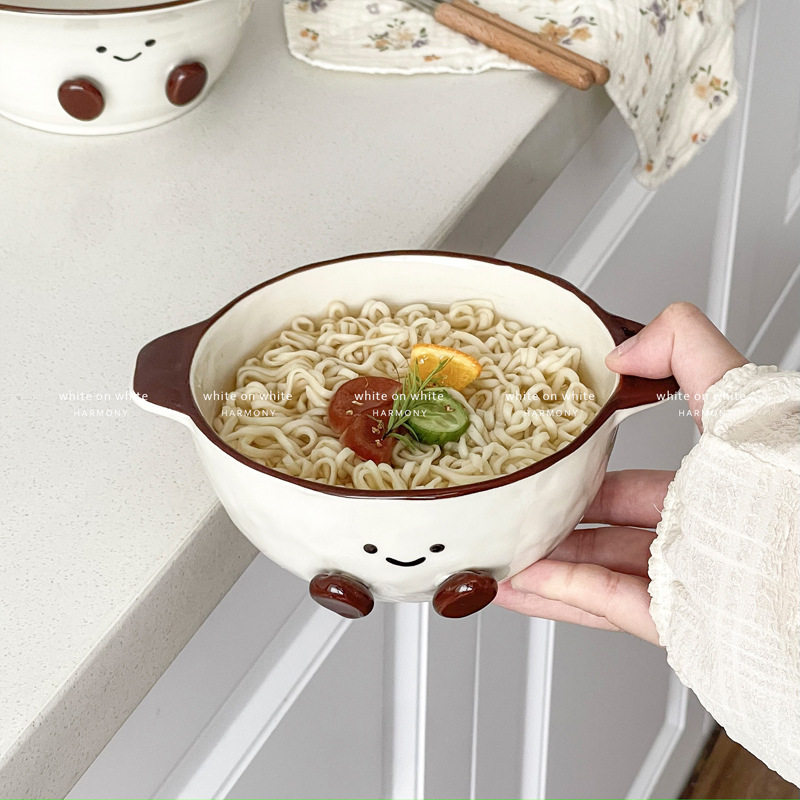 Especially Beautiful Double-Eared Bowl, Cute Instant Noodle Bowl with Handle, Dessert Yogurt Bowl, Ceramic Kidsren's Food Supplement Bowl, Soup Bowl