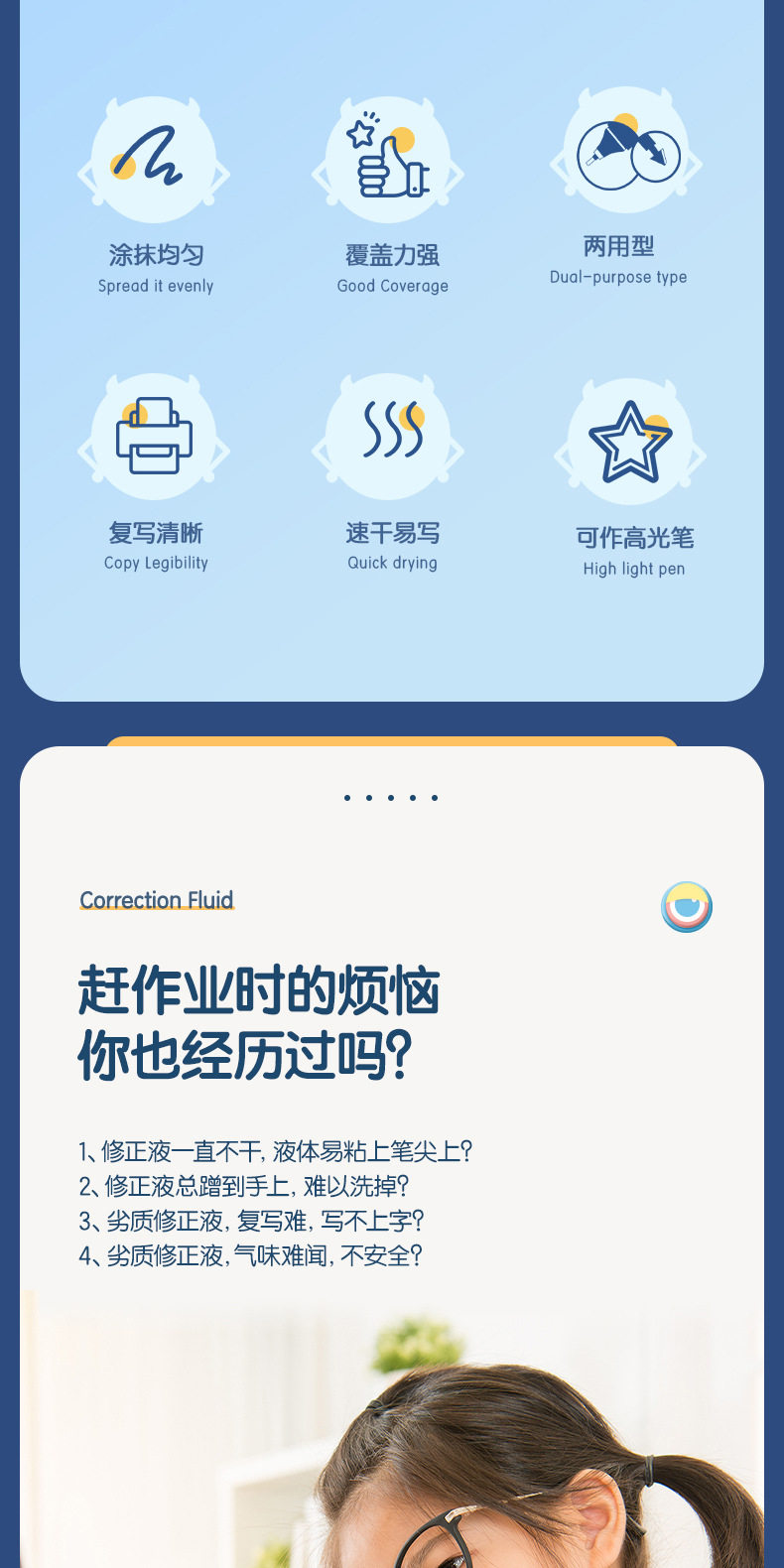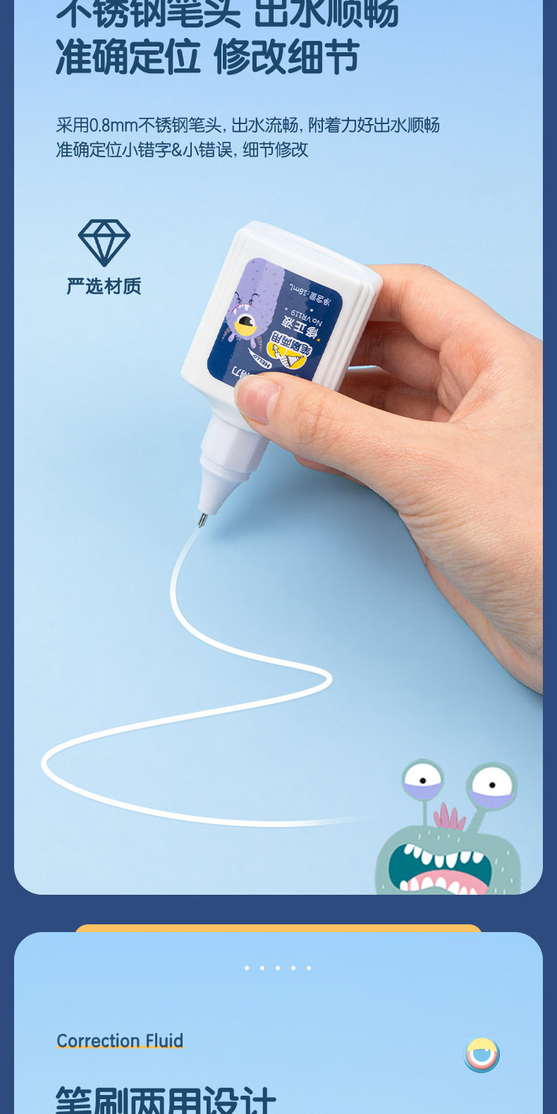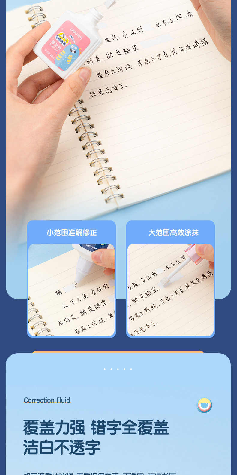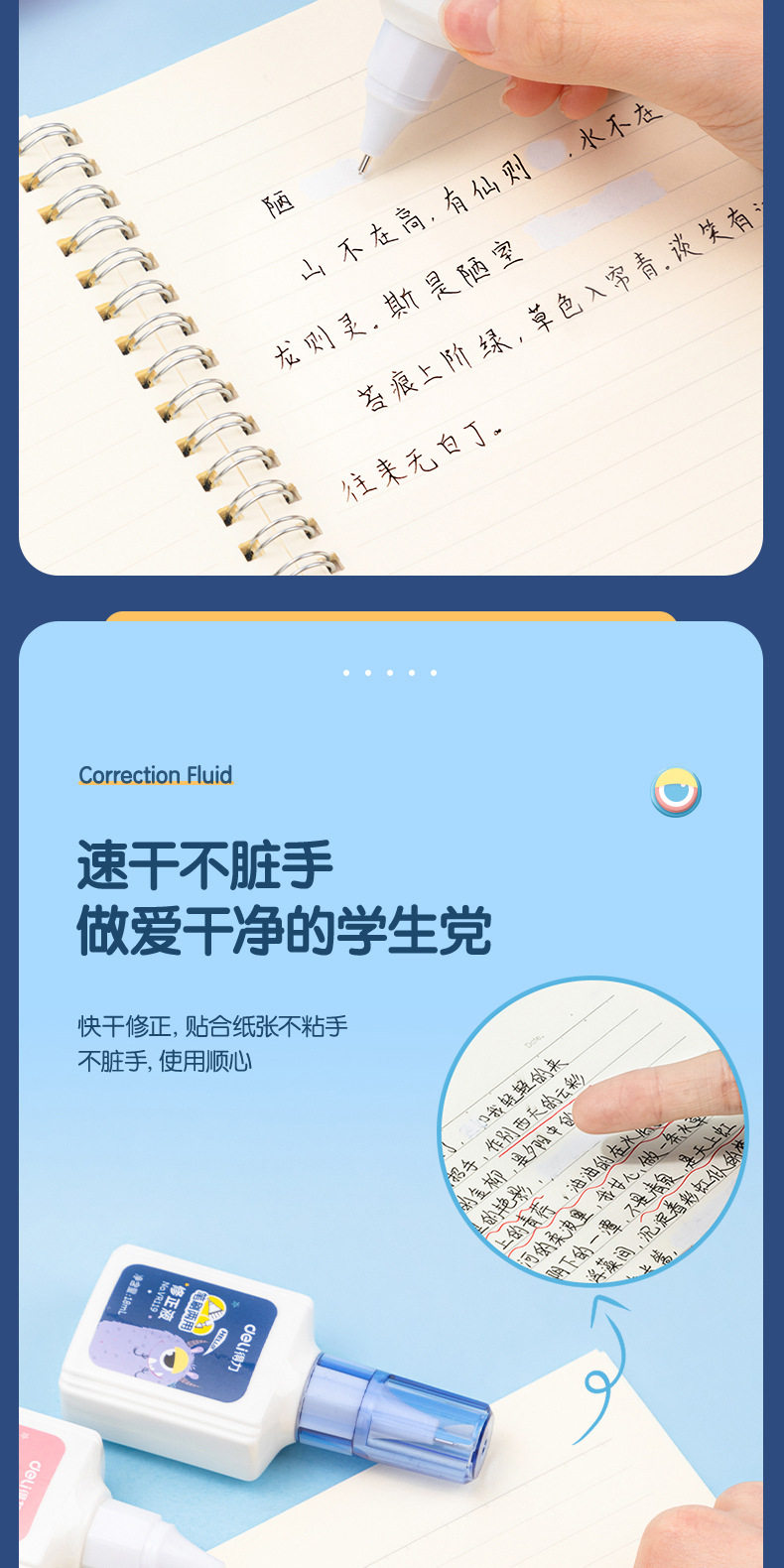 Deli Correction Fluid Pen Brush Dual-Purpose Correction Fluid for Primary School Students and Kidsren to Use Traceless Word Removal and Elimination Fluid Correction Fluid