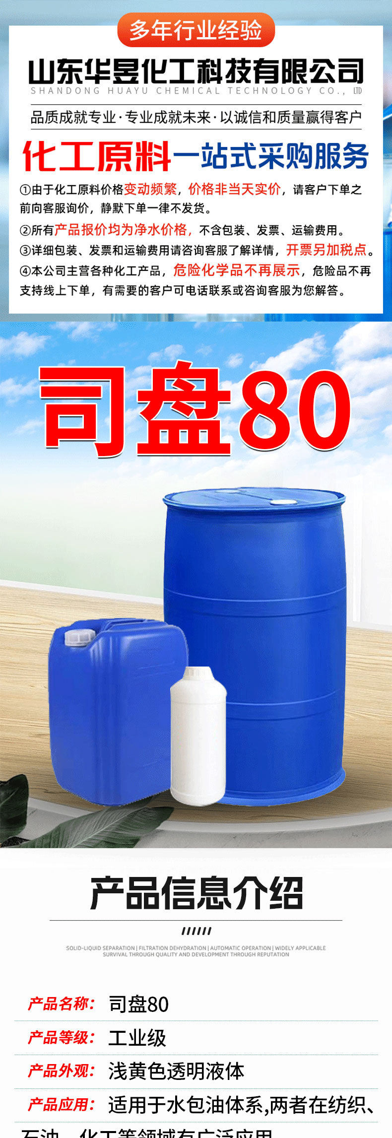 Span S-20/40/60 Surfactant Oleic Acid Sorbitan Dispersant Oil-In-Water Emulsifier Span S-80