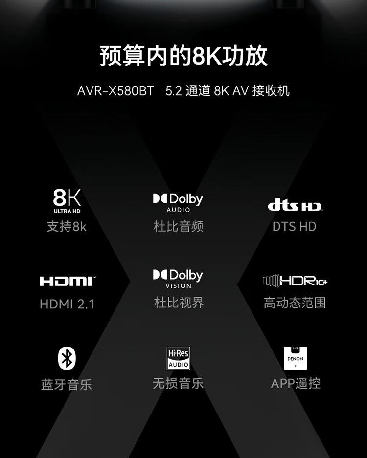 Denon Avr-X580Bt Amplifier Home Theater 5.2 Channel Av Amplifier Imported Audiophile Grade