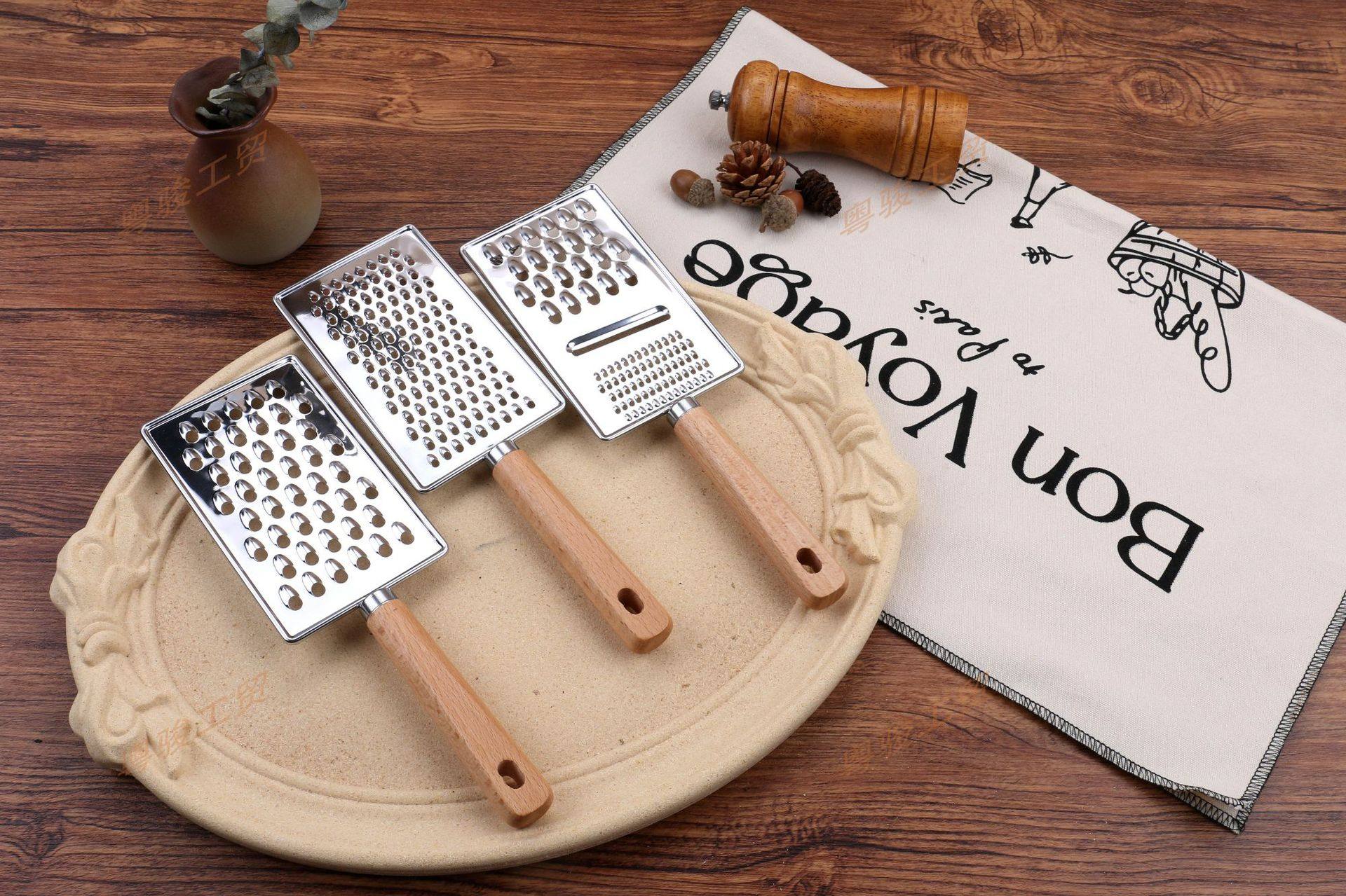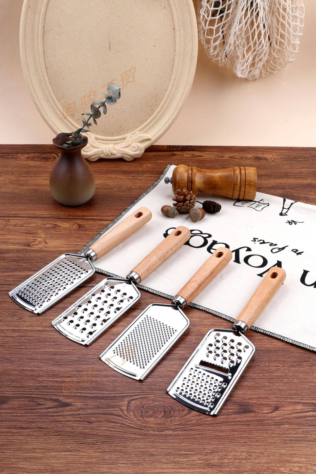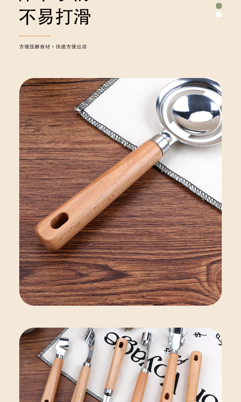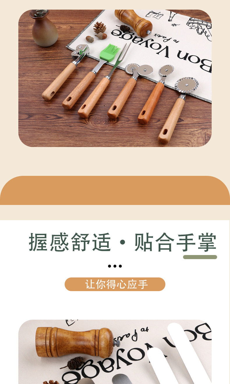 Kitchen Gadgets Wooden Handle Small Kitchen Utensils Stainless Steel Egg Beater Miscellaneous Baking Set Pizza Cheese Knife Wooden Handle