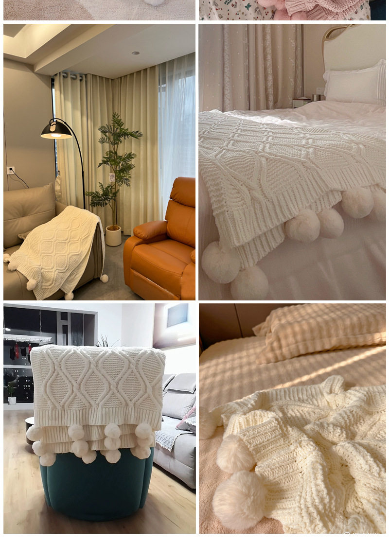 Chenille Knitted Ball Blanket Sofa Towel Beauty Salon Summer Blanket Scandinavian Decorative Blanket Air Conditioning Leisure Blanket