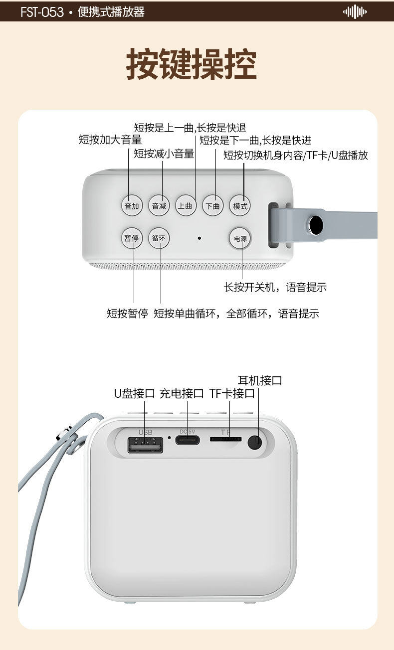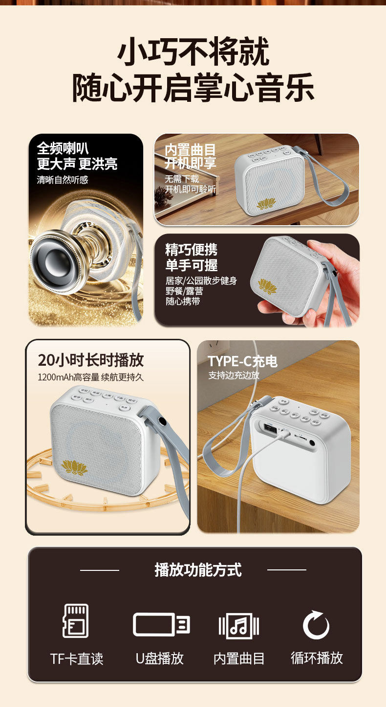 Portable Rechargeable Card Player High Quality 24-Hour Single Song Loop Player Small Speaker Audio