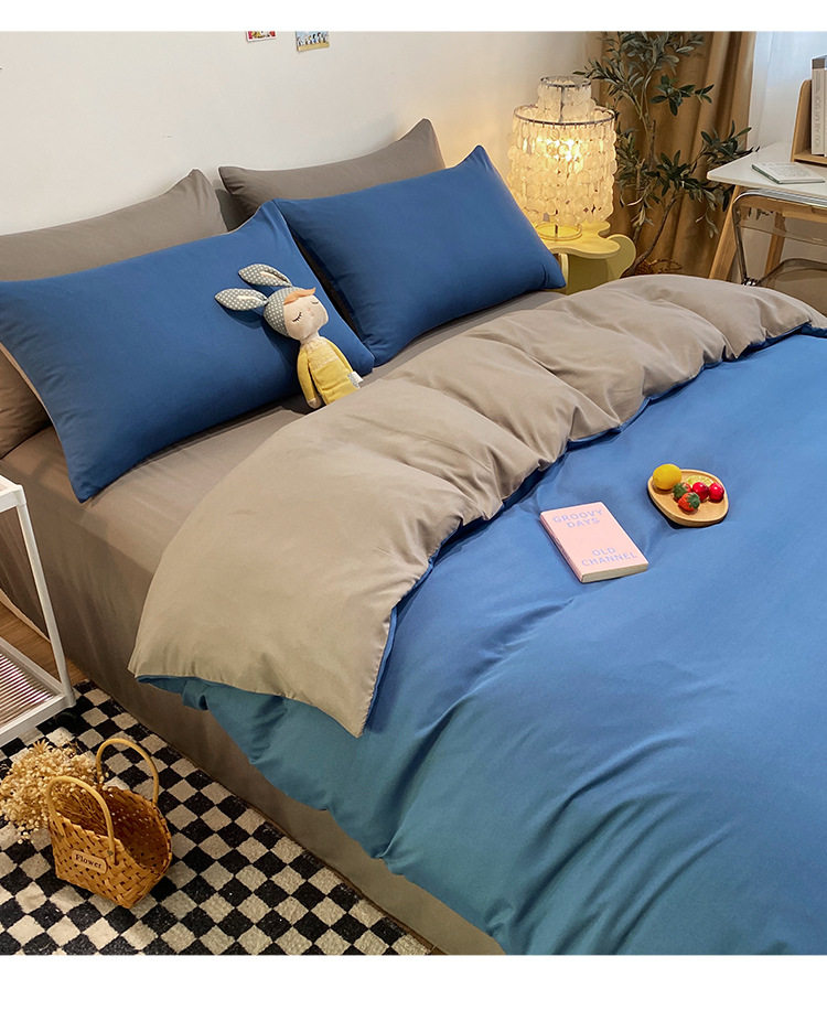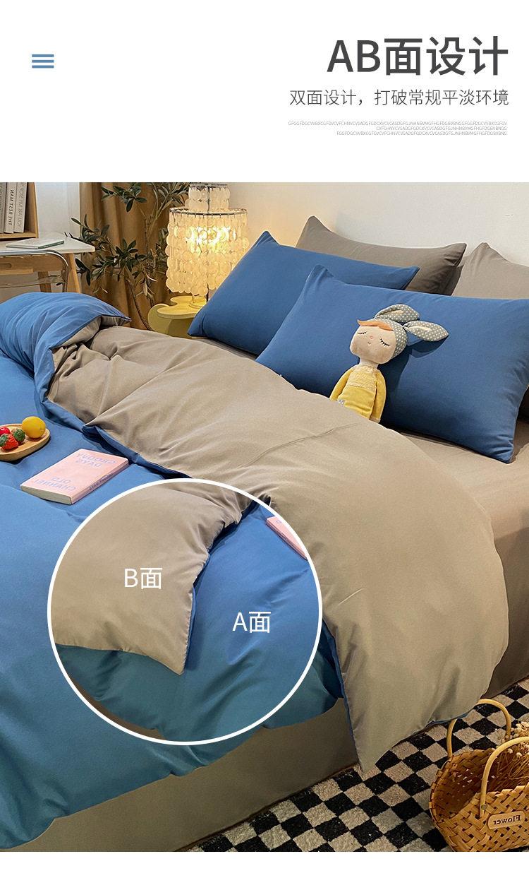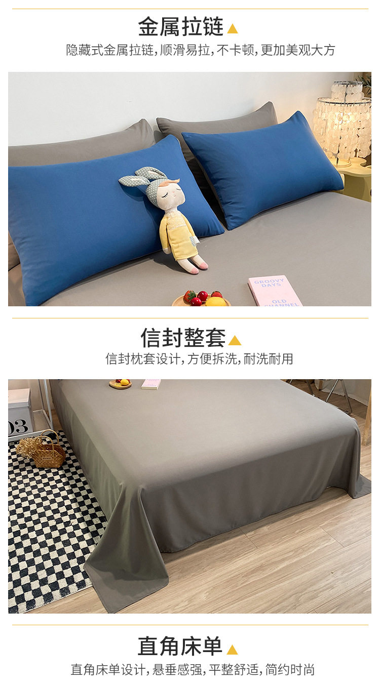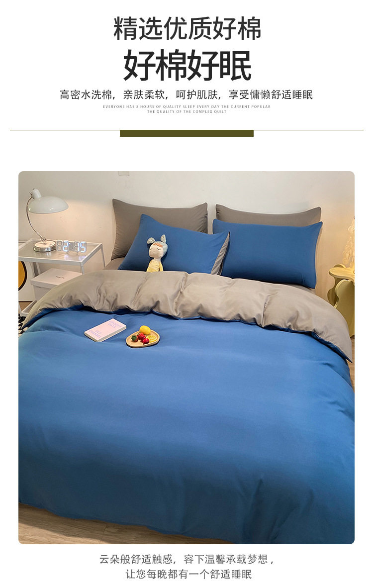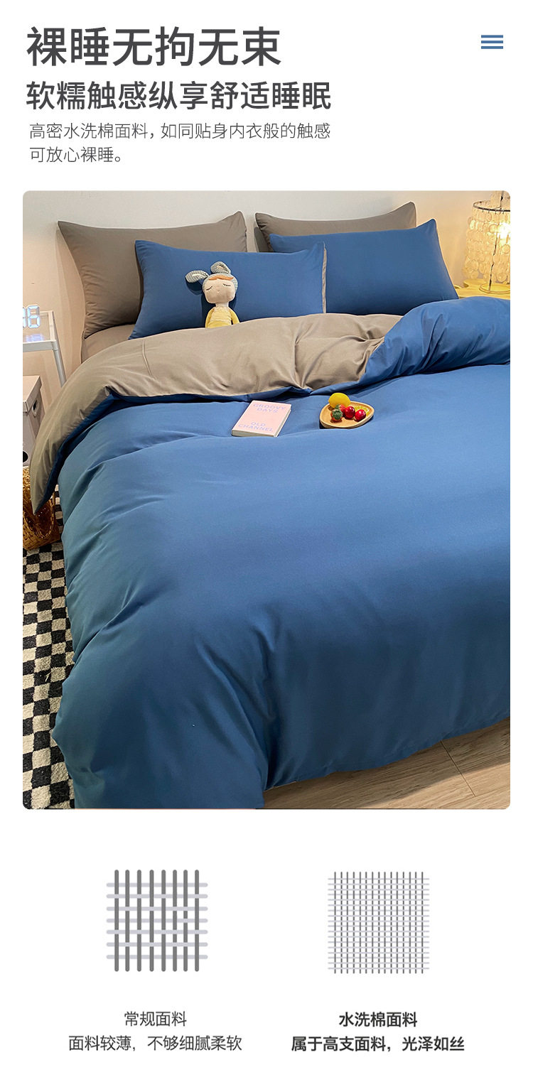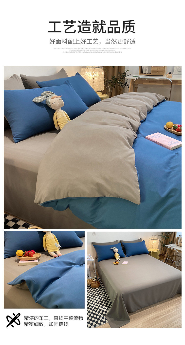 Yaxue Yuanfang Pure Color Quilt Cover Single Piece Bed Bed Sheets Four-Piece Dormitory Three-Piece Quilt Cover Brushed Washed Cotton Four-Piece Set