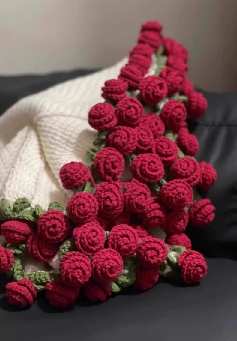 Bouquet Blanket Finished Material Package Wool DIY Flower Blanket Crocheted Wool Crocheted Flower Homemade Rose Blanket