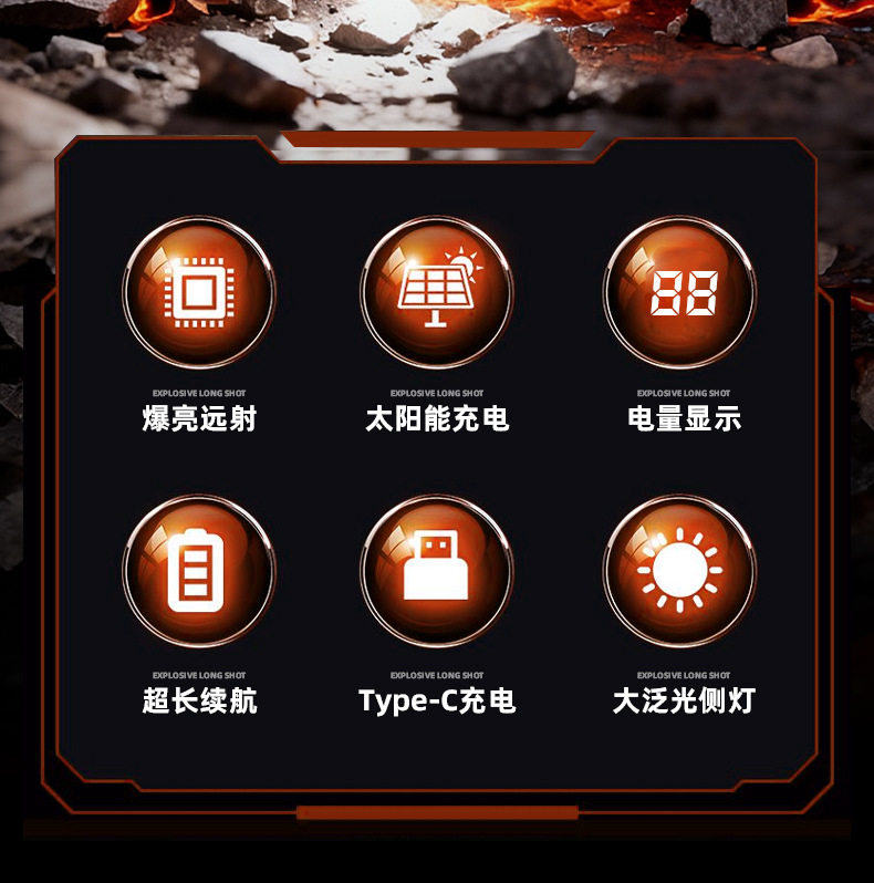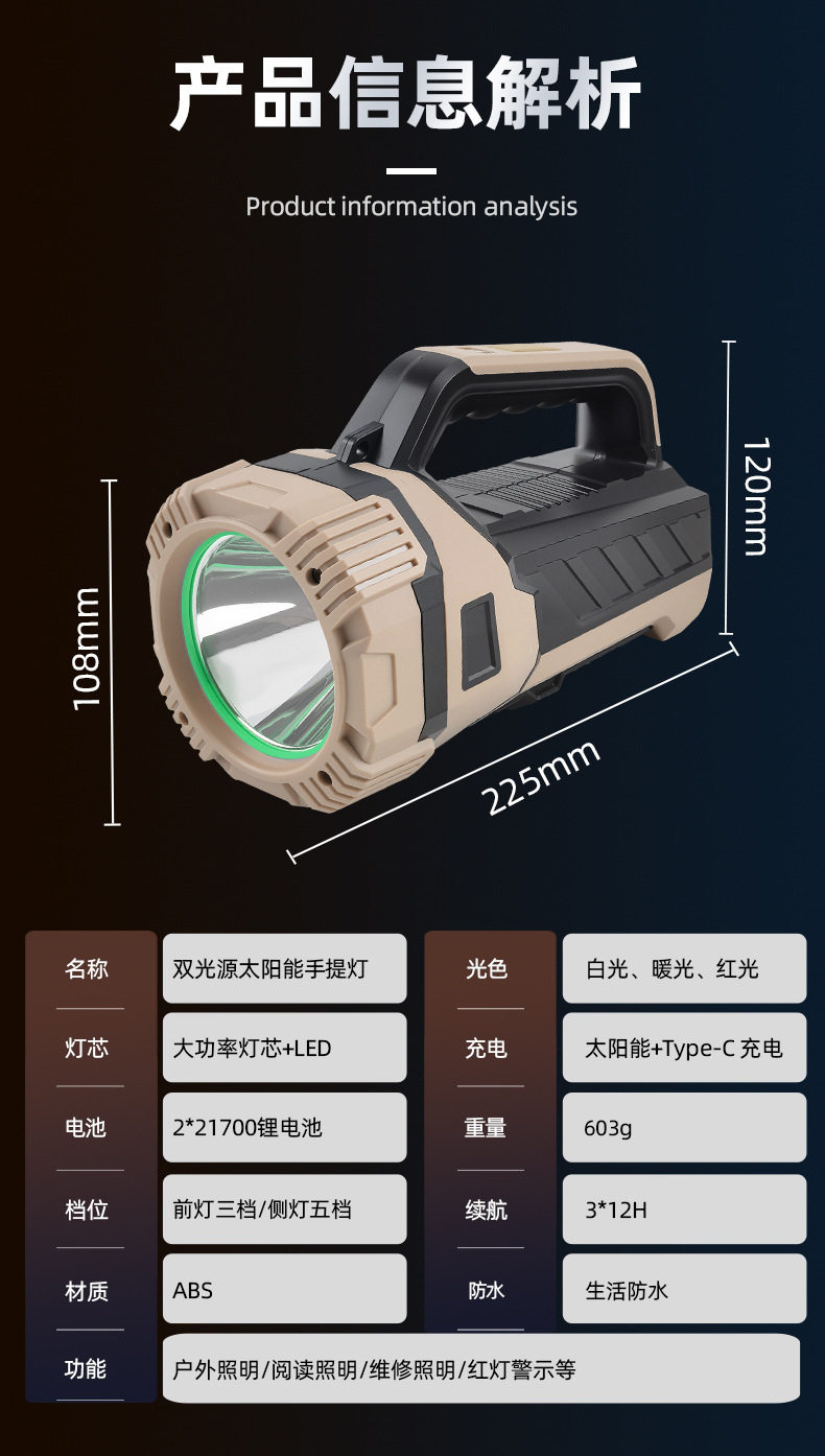 | Power supply form | Solar charging + usb charging |