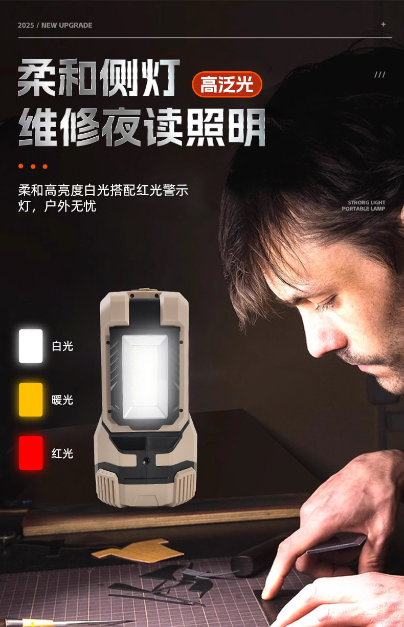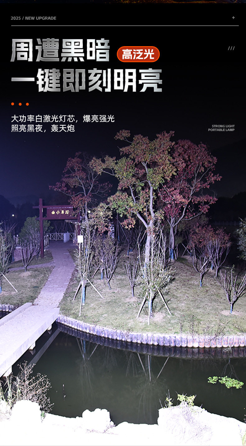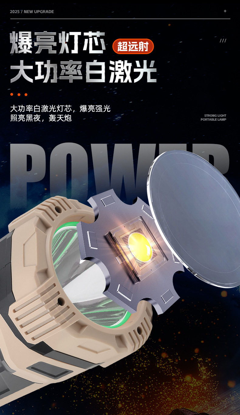 New Dual Light Source Searchlight Flashlight Ultra-Bright Portable Light Car Power Bank Outdoor Multi-Function Ultra-Long Battery Life