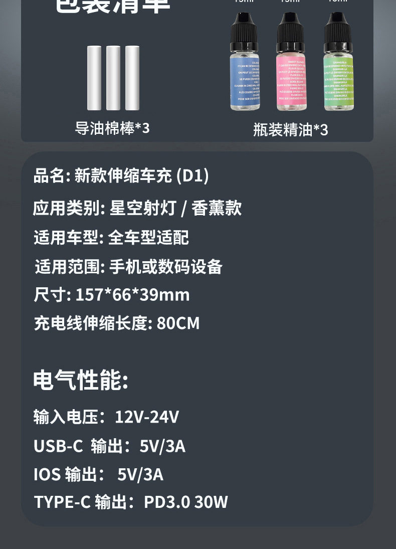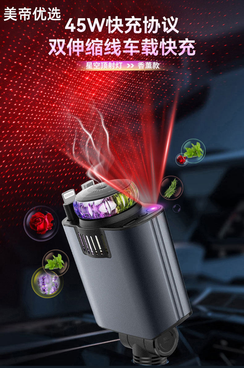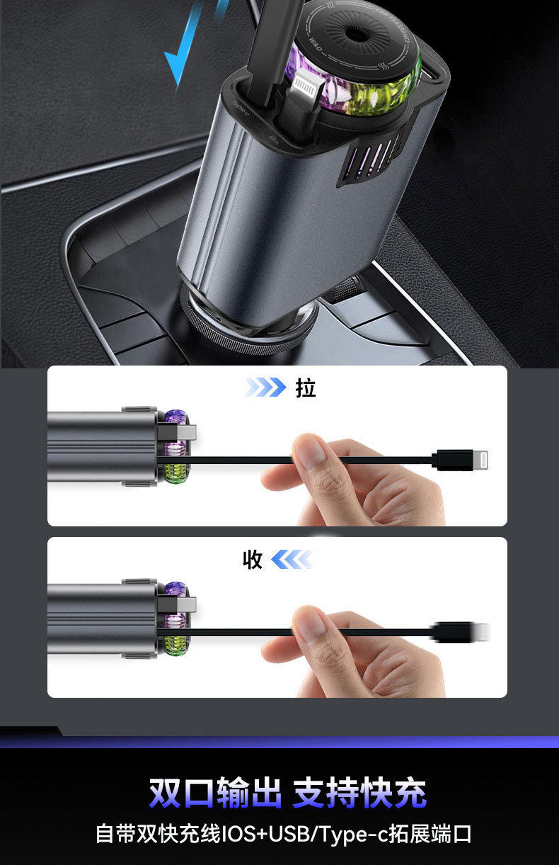 Car Charger Pd Flash Charging Retractable Cable Fast Charging Cigarette Lighter Cross-Border Aromatherapy Spray Atmosphere Light D1 Cross-Border