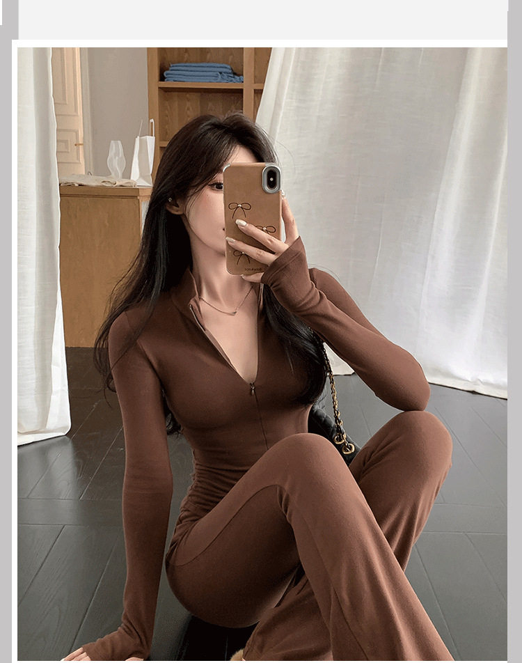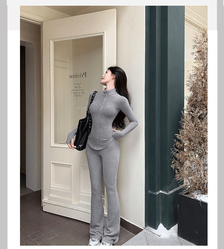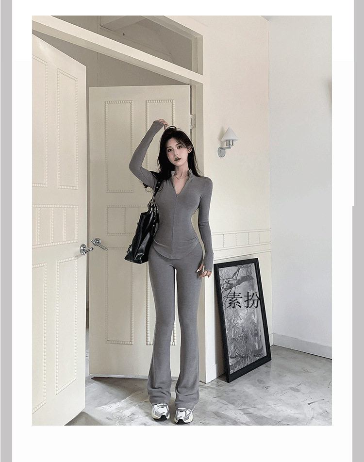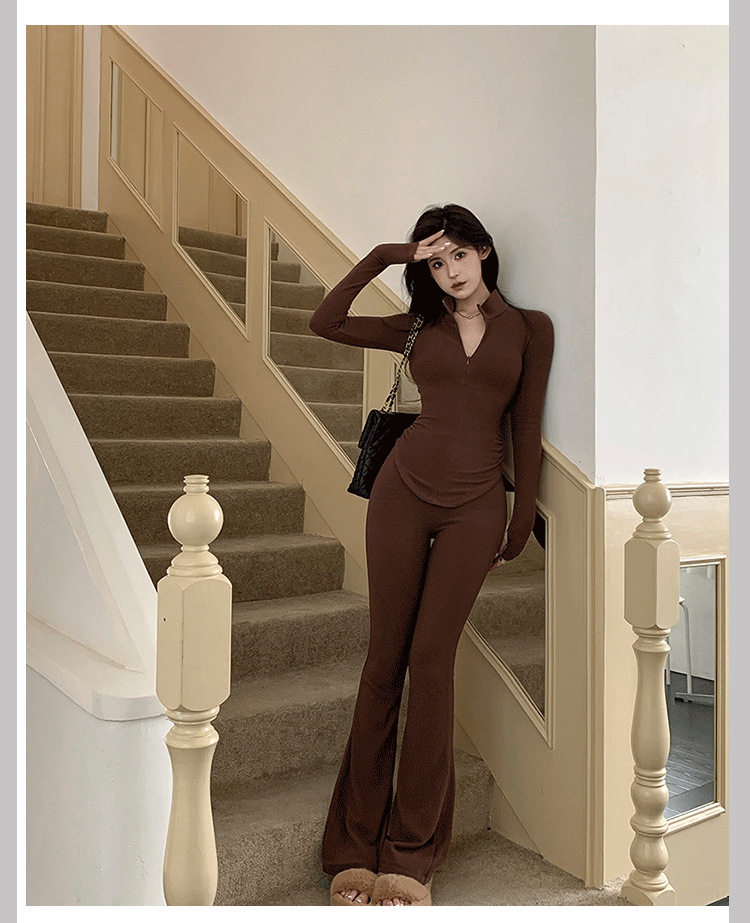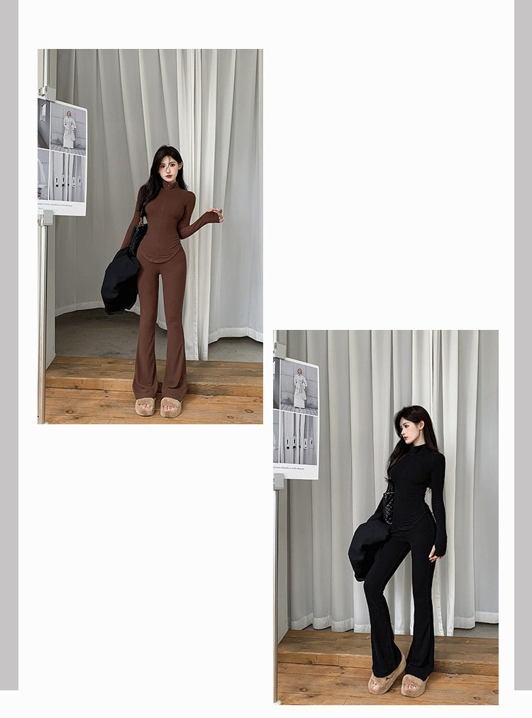 Casual Hot Girl Tight-Fitting Long-Sleeved Bottoming Shirt Top Flared Pants Two-Piece Suit for Women Spring Outfit Complete Set for Women