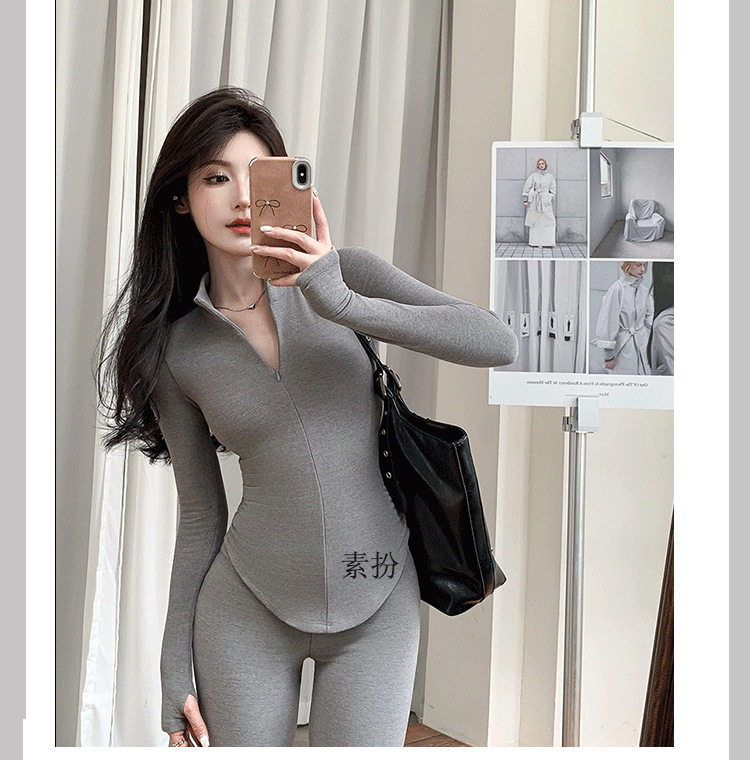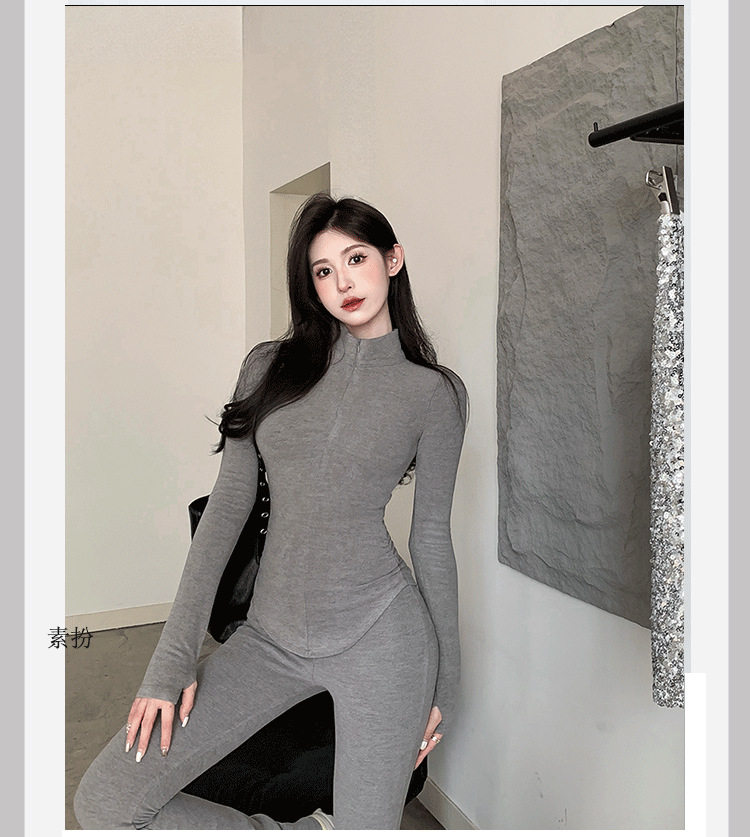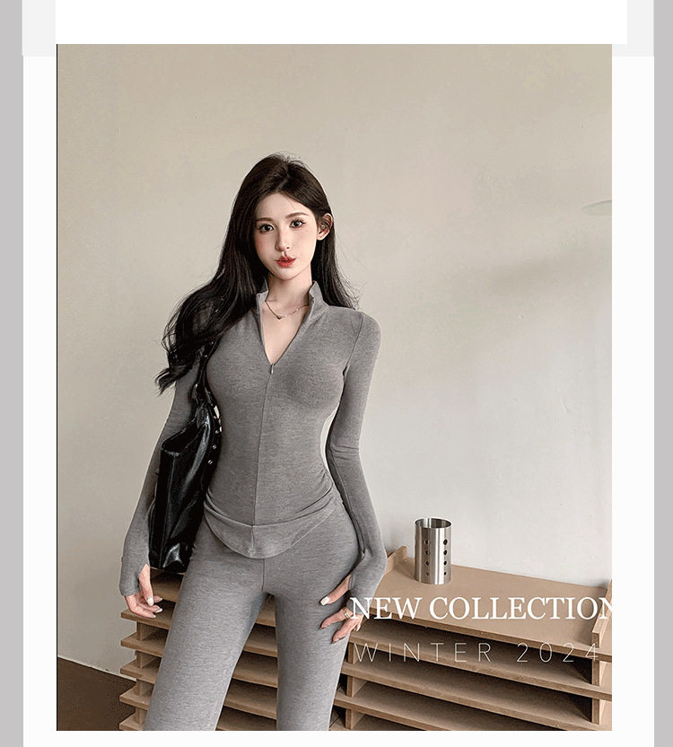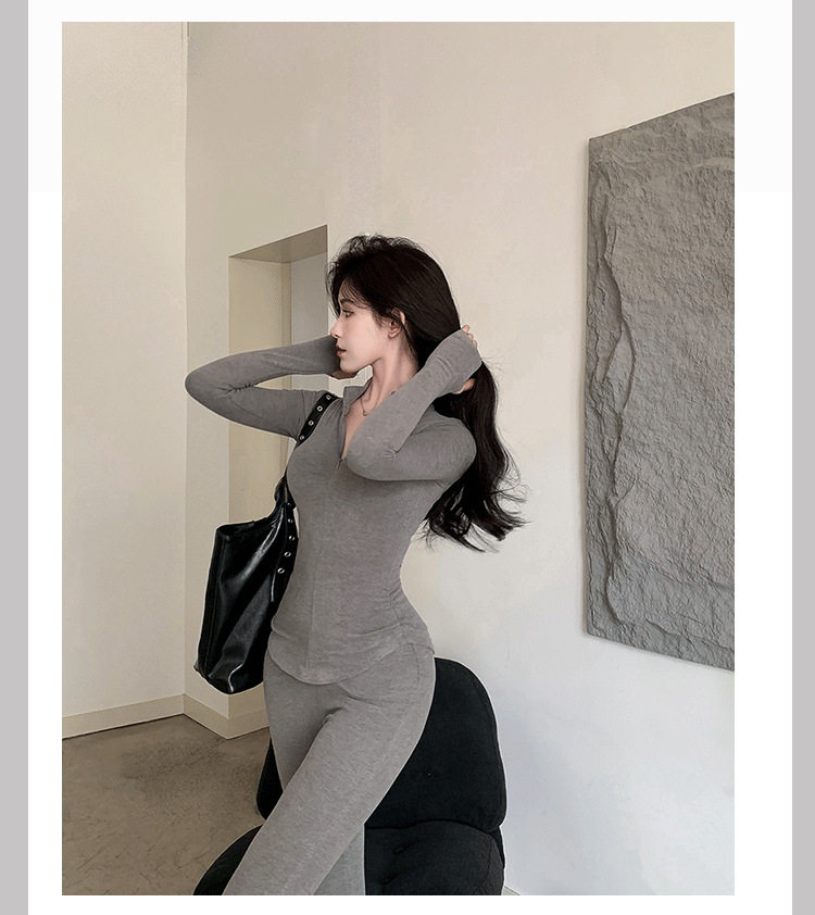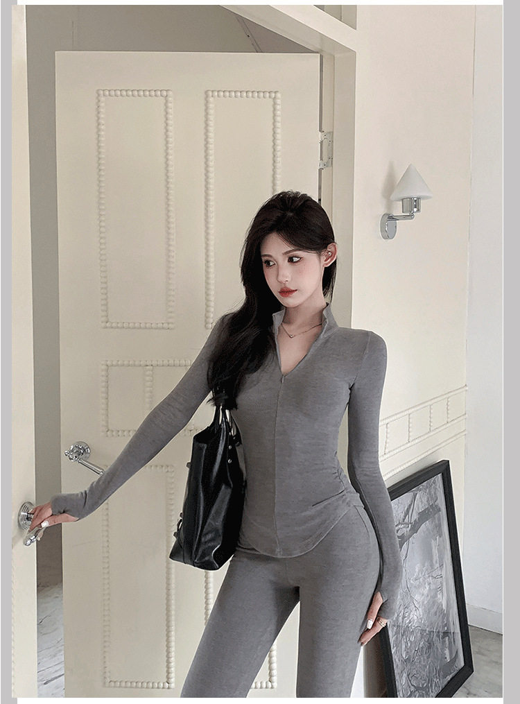 Casual Hot Girl Tight-Fitting Long-Sleeved Bottoming Shirt Top Flared Pants Two-Piece Suit for Women Spring Outfit Complete Set for Women