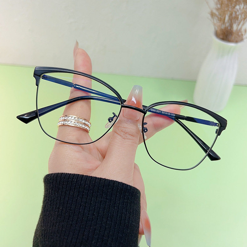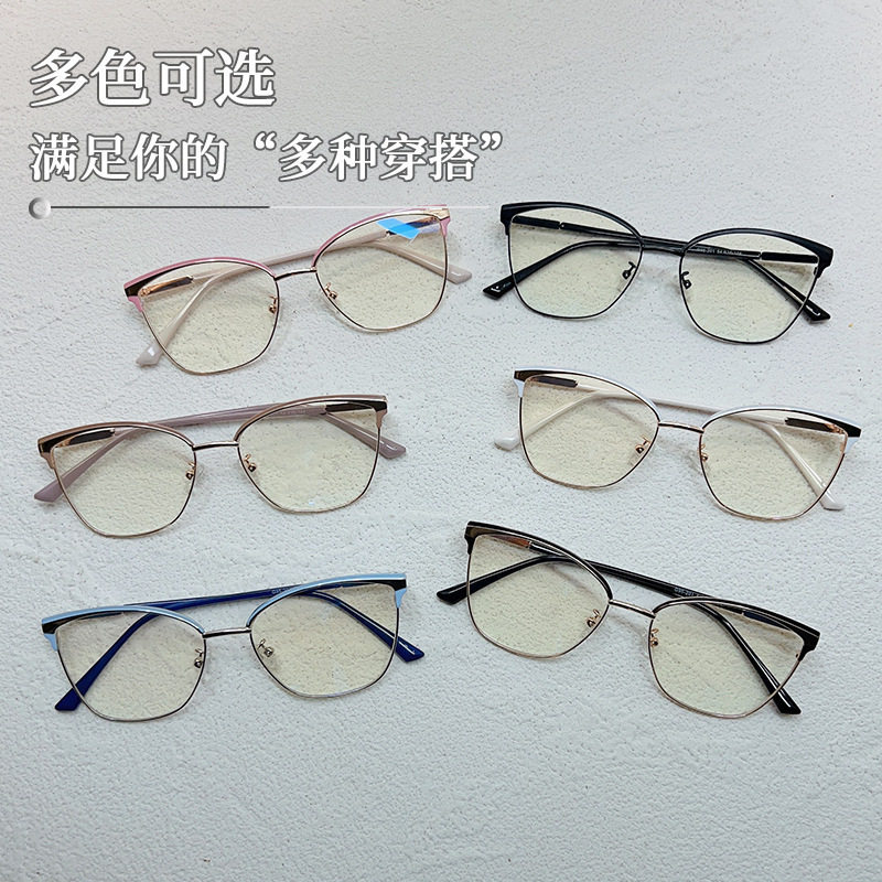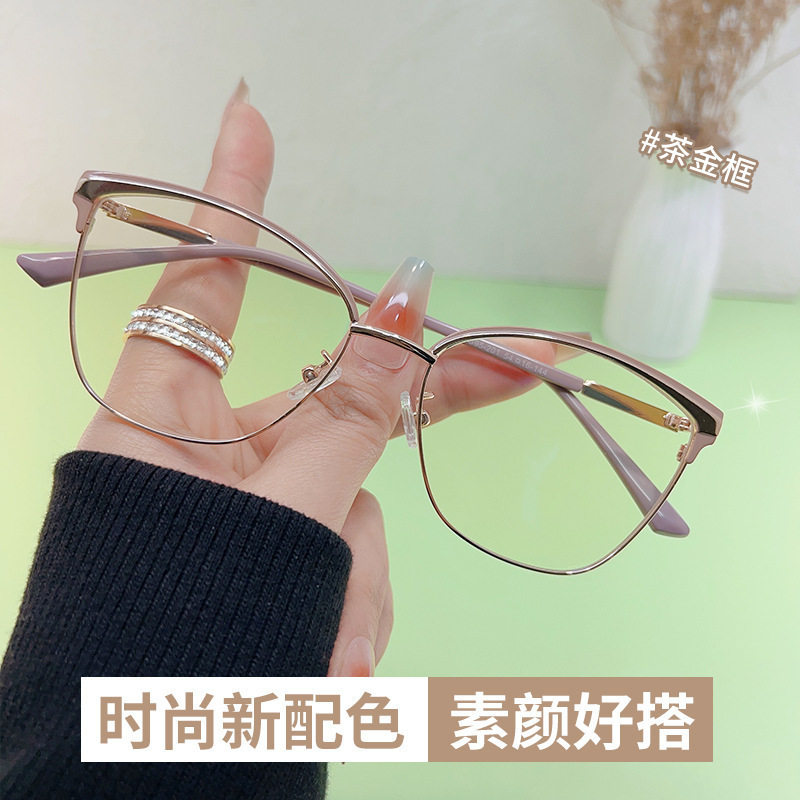 New Style Plain Mirror Men's Glasses Frame 2023 Women's Cat Eye European and American Retro Metal Anti-Blue Light Glasses Fashion Taizhou
