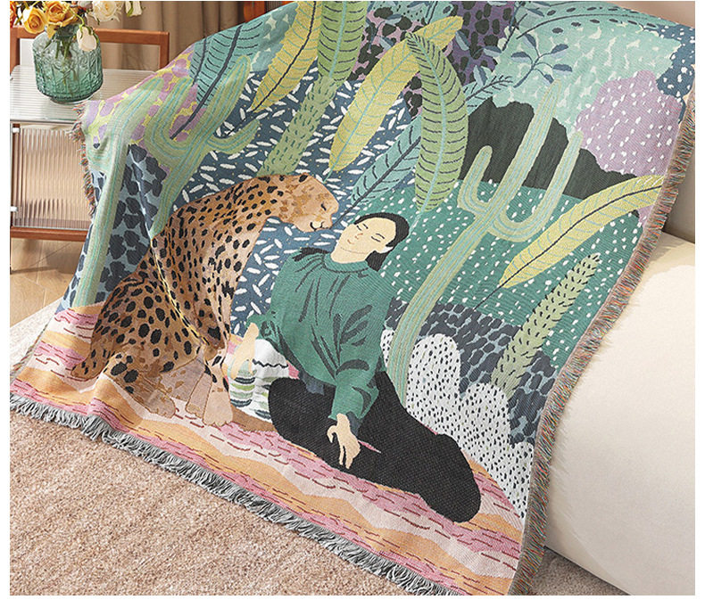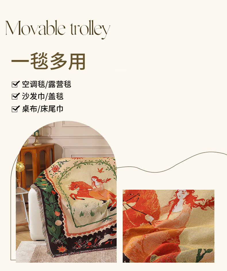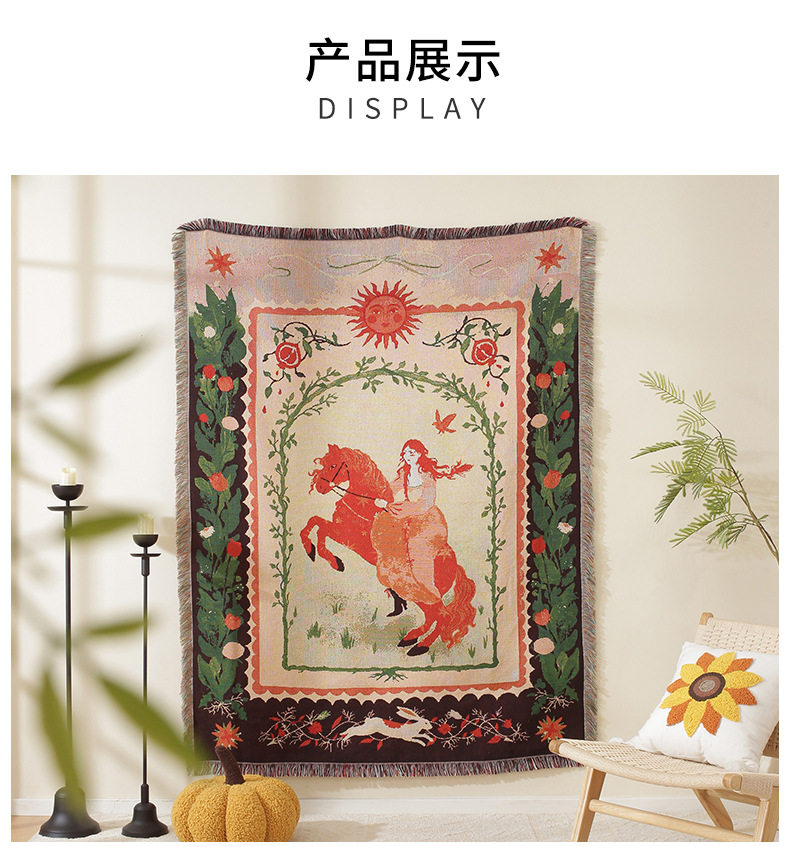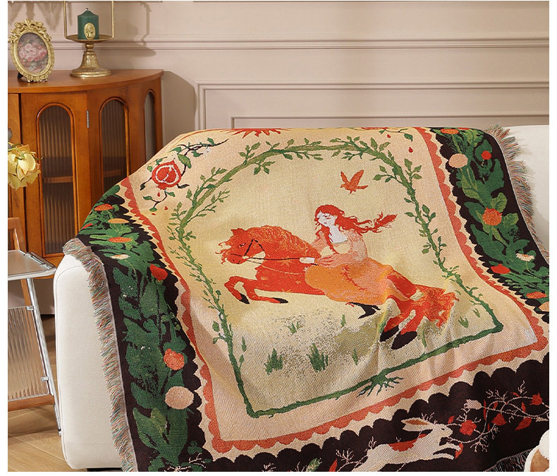 Modern Light Luxury Red-Haired Woman Riding Sofa Towel Decorative Tapestry Camping Style Placemat Air-Conditioning Cover Office Leisure Blanket Towel